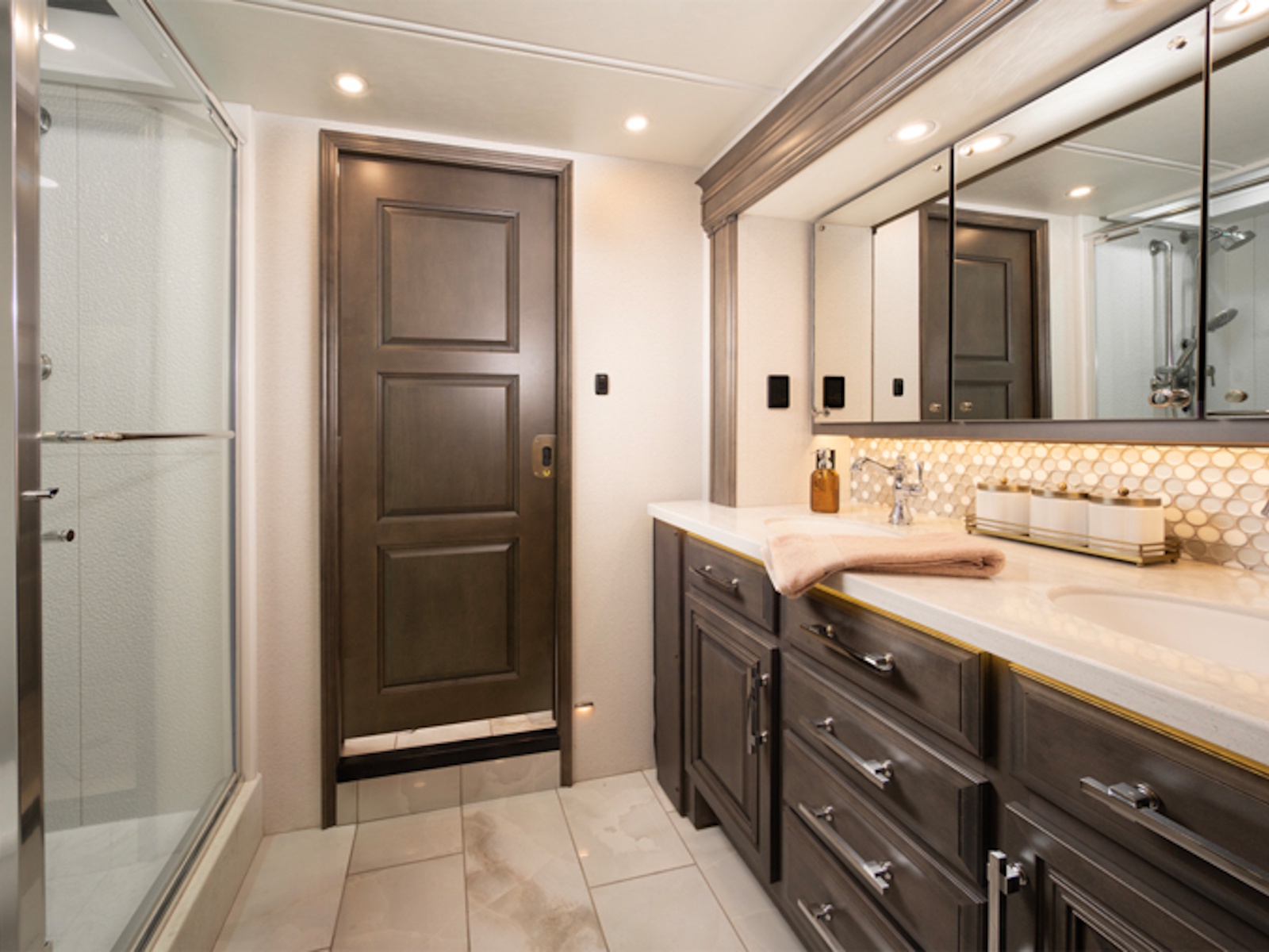 - Heating System: Aqua-Hot 450D hydronic water and heating system with in-floor heat throughout and engine preheat