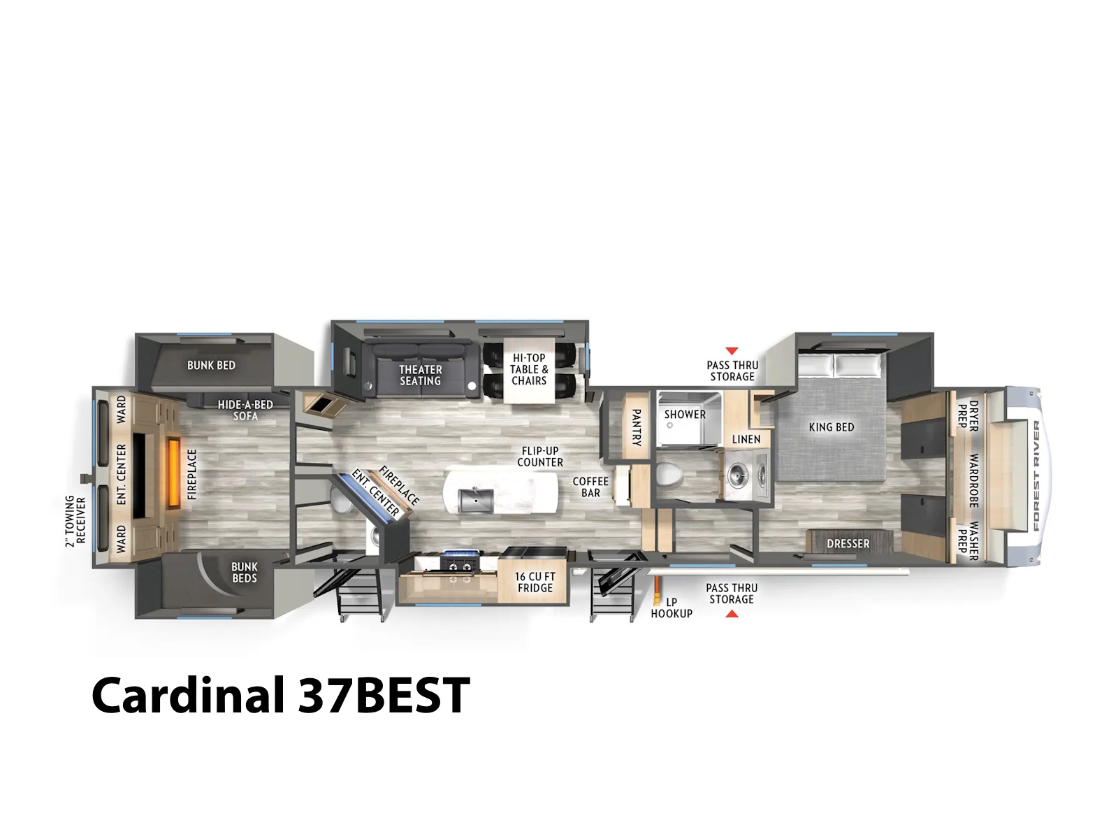 Cardinal is one of the oldest and most respected fifth wheel brands in the country, known for being Forest River's first full-profile luxury fifth wheel. The Cardinal design is crafted for all types of campers, whether you're on an extended stay, road-tripping from Montana to Florida, or enjoying a weekend close to home. Cardinal brings affordable luxury back to camping!