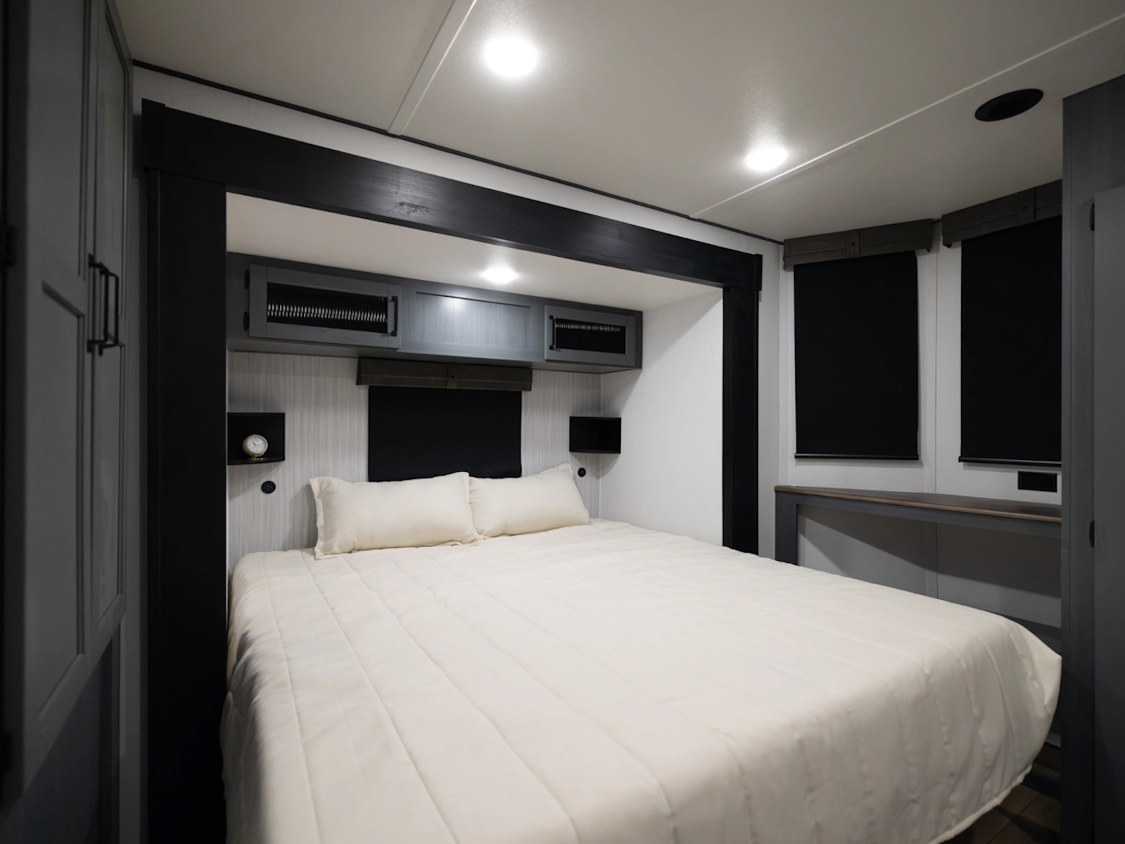 Vanleigh takes the quality-over-quantity approach to building fifth-wheels. Their RVs feature real handcrafted solid wood cabinetry, Multiplex 12V Electrical System (originally implemented by Mercedes Benz), and 5-sided framed, insulated, and laminated slide rooms (suitable for full-time living.) Further, Vanleigh conducts a three-stage PDI that includes a positive pressure test, camping trip simulation, and a final quality-control test. Backing this all up is their 3-year construction warranty and 1-year base limited warranty (no mileage or deductible limitations.)