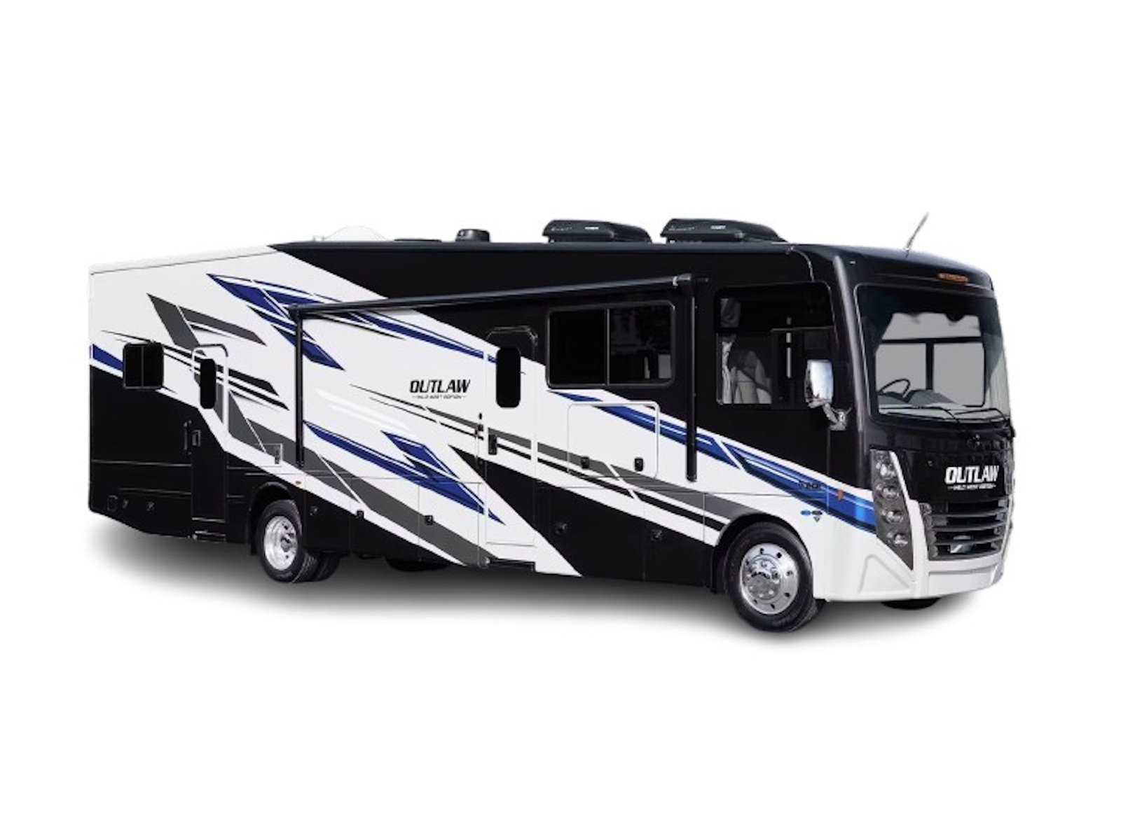 - Elevate your adventures with the Outlaw®, built on the Ford® F-53 chassis with an 8,000-pound trailer hitch to tow other vehicles. Inside, you’ll find a garage for bikes, kayaks, or other adventure essentials. Stay aware on the road with features like blind spot detection, heated/remote mirrors with side-view cameras, and a 14-inch touchscreen dash radio with Bluetooth®, Apple CarPlay®, Android Auto™, and SiriusXM® prep. Once parked, use the Rapid Camp+® multiplex system to control your RV’s lighting, climate, tank levels, and generator from the 7-inch touchscreen or Wi-Fi app-enabled device.