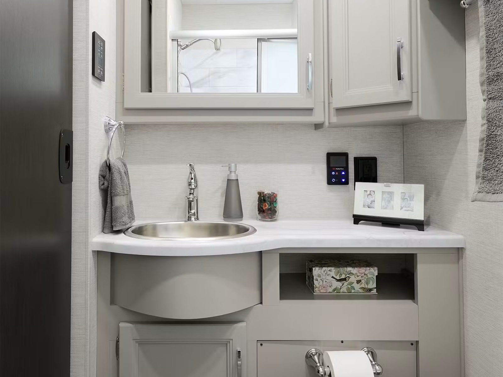 • Stay connected and entertained no matter where your journey takes you with the Winegard® ConnecT™ 5G, your all-in-one Wi-Fi extender, 5G hotspot, and TV antenna. Kick back and enjoy a movie night on the 40-inch LED Smart TV in the living area. If you prefer a change of scenery, the garage and bedroom are prepped for TV installation, so you can move the entertainment wherever you like. If you’re hosting guests outdoors, use the 40-inch exterior LED TV with a Bluetooth® soundbar and radio for a perfect evening at the campsite.