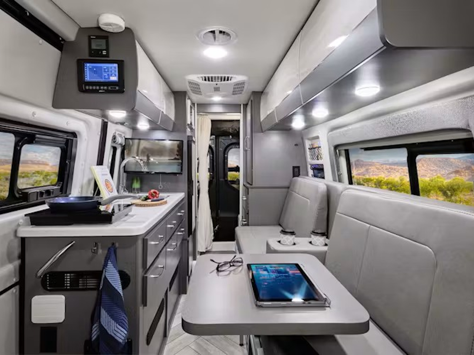 - Whip up delicious meals from your Mercedes-Benz® Sprinter Van with everything the Tranquility® has to offer. A 12-volt refrigerator keeps your ingredients fresh, while a single-burner induction cooktop and microwave oven make cooking on the go easy in this Class B motorhome. Each model features a versatile Laguna table system, perfect for dining, working, or game nights with family and friends. After your meal, cleanup is a breeze with the stainless-steel single-bowl sink, complete with a cover to maximize counter space when not in use.