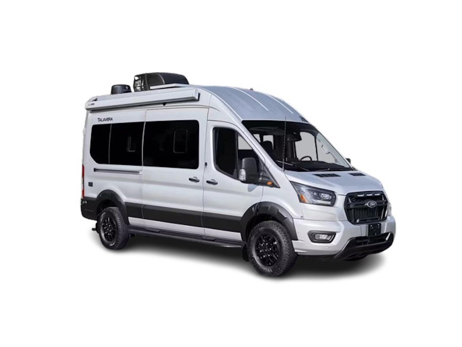 - Boasting a Ford® Transit chassis, the Talavera® gives you the confidence to take on any adventure. With an all-wheel drive system, blind spot assist, adaptive cruise control, and a high-resolution digital camera with reverse and side sensing, you’ll have a clear view of your surroundings even when towing a car or trailer to the 6,000-pound hitch. Roam off-grid easily thanks to this camper van’s optional Re(Li)able™ power pack electrical system, including a 400-amp-hour lithium battery, a 3000-watt pure sine inverter, and a secondary alternator with an auto engine start module.