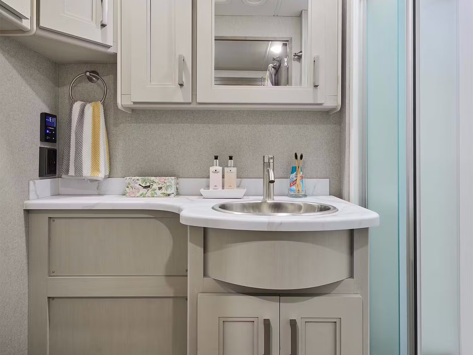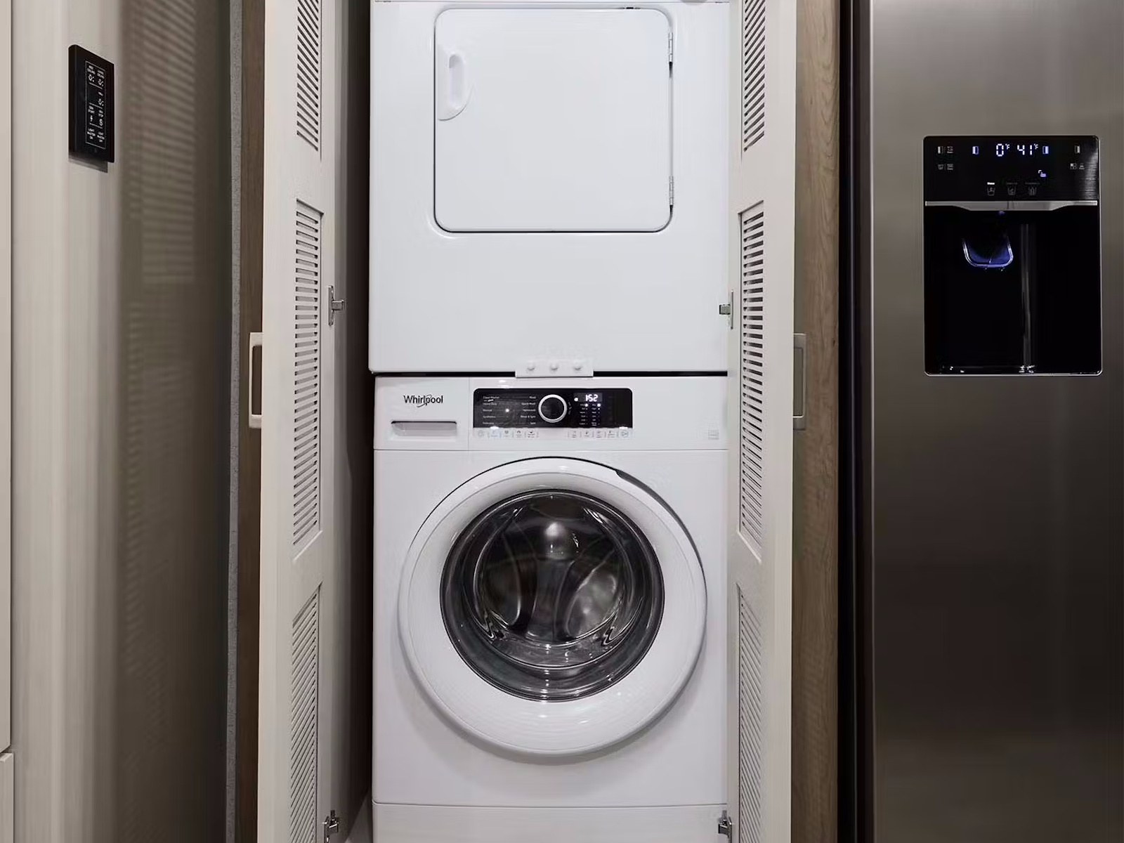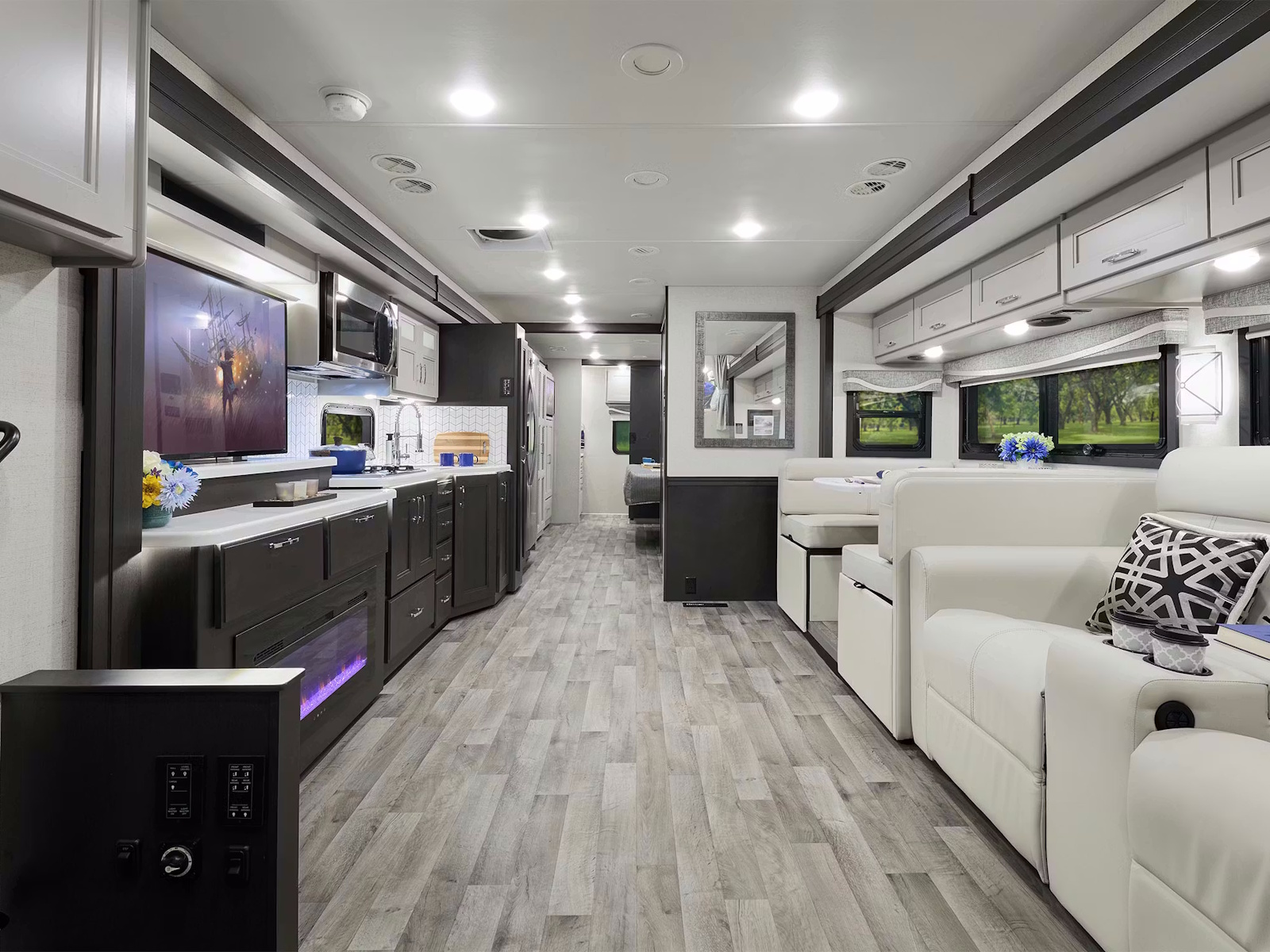 - Prepare delicious meals wherever the road leads in the Pasadena®, designed with a kitchen that feels like home. A spacious pantry and residential refrigerator with an in-door water and ice dispenser make it easy to store all your ingredients. At the same time, the double-bowl stainless-steel sink with a pull-down sprayer simplifies cleanup. Whether using the two-burner gas range with a single induction cooktop or the convection microwave with built-in air fryer, you’ll have the tools to cook everything from quick bites to gourmet dinners.