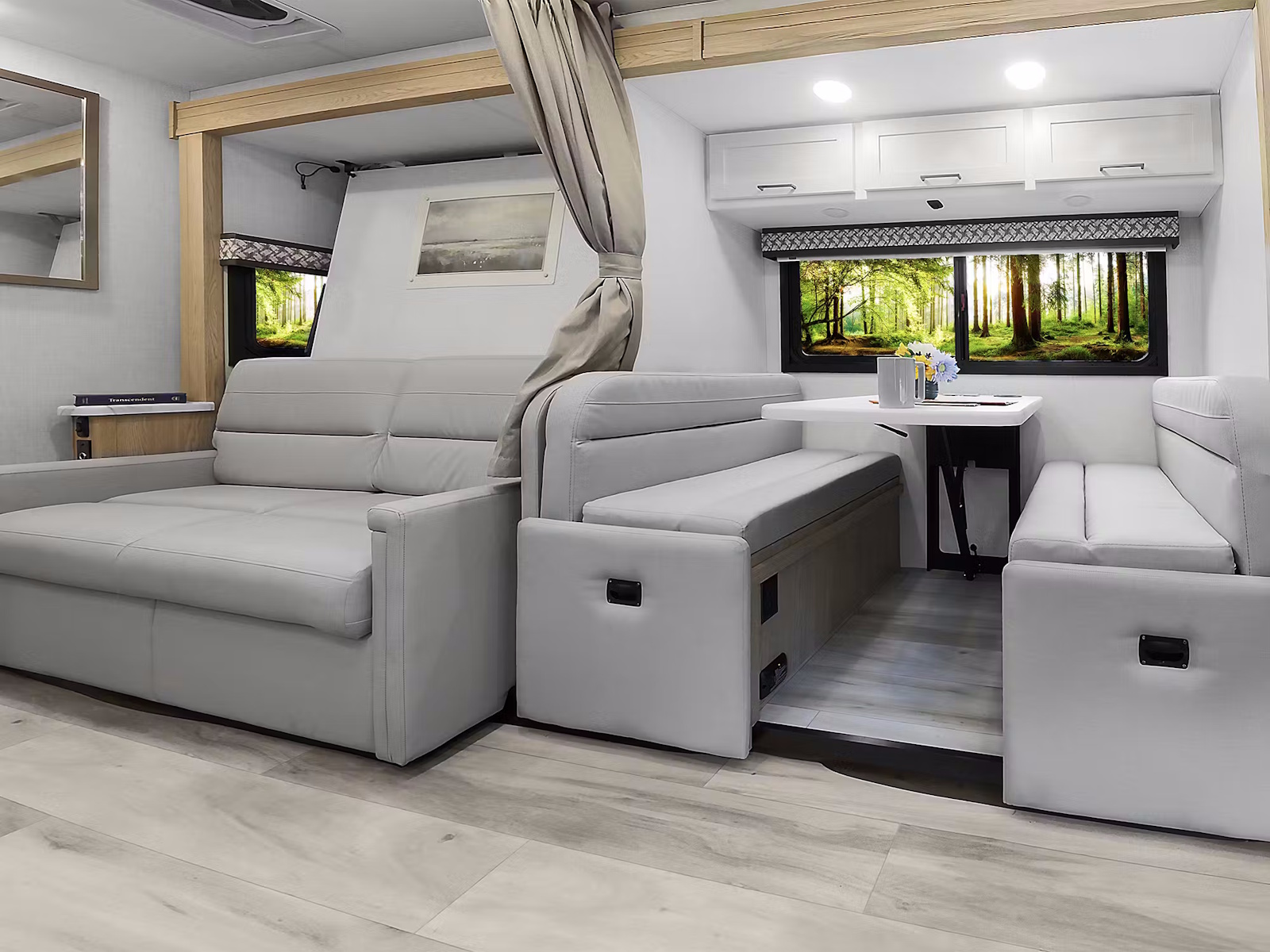 - Built for life on the road, the Quantum® Class C RV combines comfort, durability, and innovative design with easy-to-clean residential vinyl flooring, perfect for pet owners. Most floor plans include the versatile Dream Dinette®, which effortlessly converts from a dining area to an extra bed. The LC19 features a spacious rear U-dinette that transforms into a sleeping space, while the LX19 has benches with a Lagun table system. In the LC28, KW29, LF31, and HS31 layouts, you'll appreciate the stylish interior and the option to relax on the standard jack-knife sofa or upgrade to the optional theater seating for added comfort.