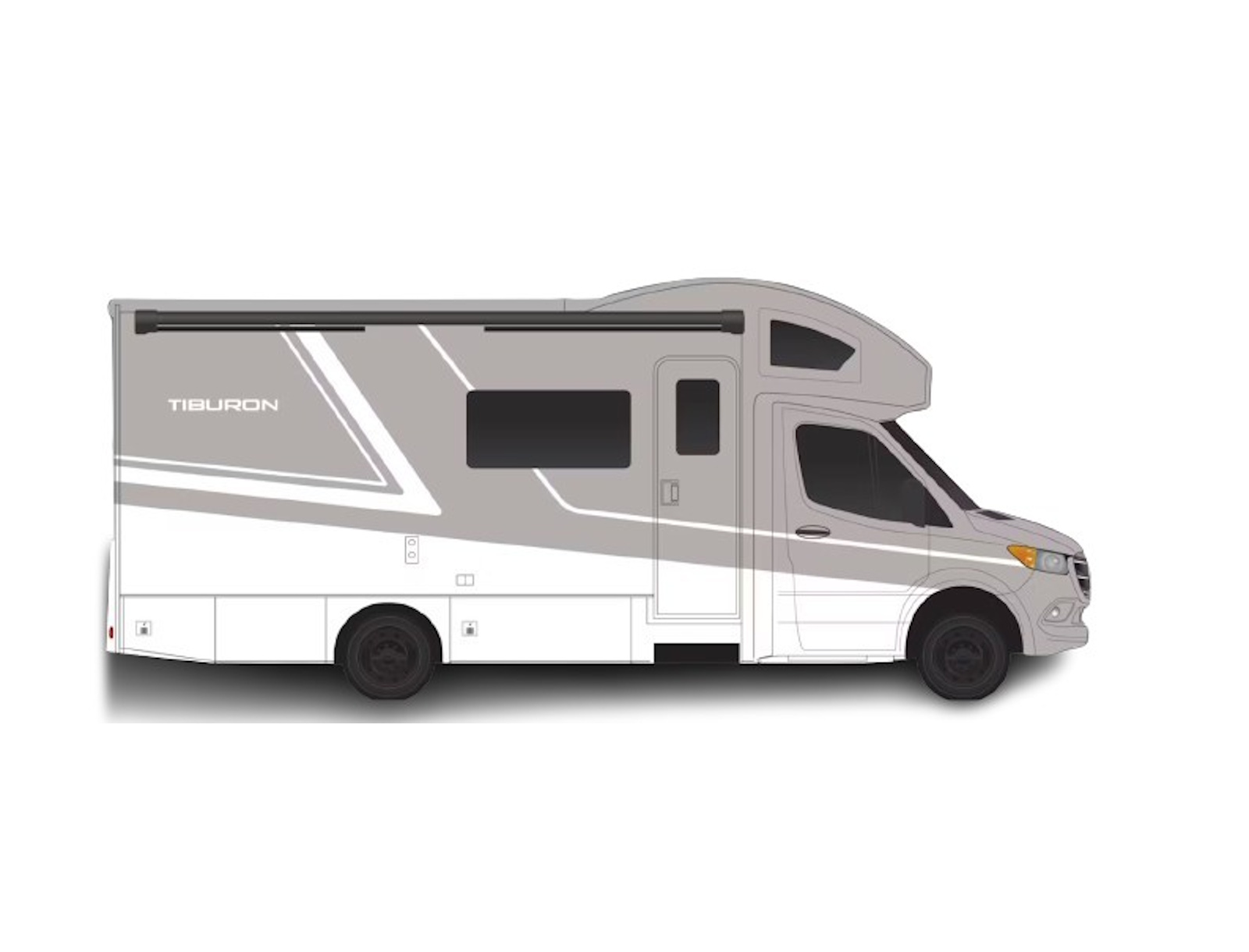 - Start your next adventure in the Tiburon®, built on the reliable Mercedes-Benz® Sprinter chassis and powered by a 2.0-liter I-4 diesel engine. Thanks to the 5,000-pound trailer hitch, towing is effortless. Safety is a top priority, with advanced Mercedes-Benz® features including DISTRONIC PLUS® cruise control with distance regulation, active braking assist, attention assist, active lane-keeping assist, and a wet wiper system. For added peace of mind, all floor plans offer an optional blind spot detection system with audible alerts.