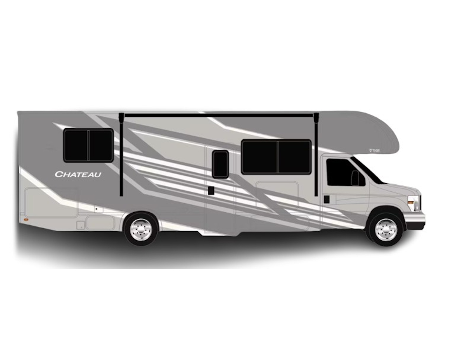 - Pack everything you need for your journey easily in the Chateau®, featuring lighted rotocast storage compartments in every model and a spacious MEGA-Storage™ compartment available on most floor plans. After a day of exploring, kick back under the power patio awning with built-in LED lighting for a cozy outdoor hangout. Level up your campsite with optional upgrades like a 32-inch Smart TV with a Bluetooth® soundbar in the 28Z, 29K, 31E, and 31H floor plans, or the pull-out kitchen with a griddle and 12-volt cooler on the 28Z and 31H.