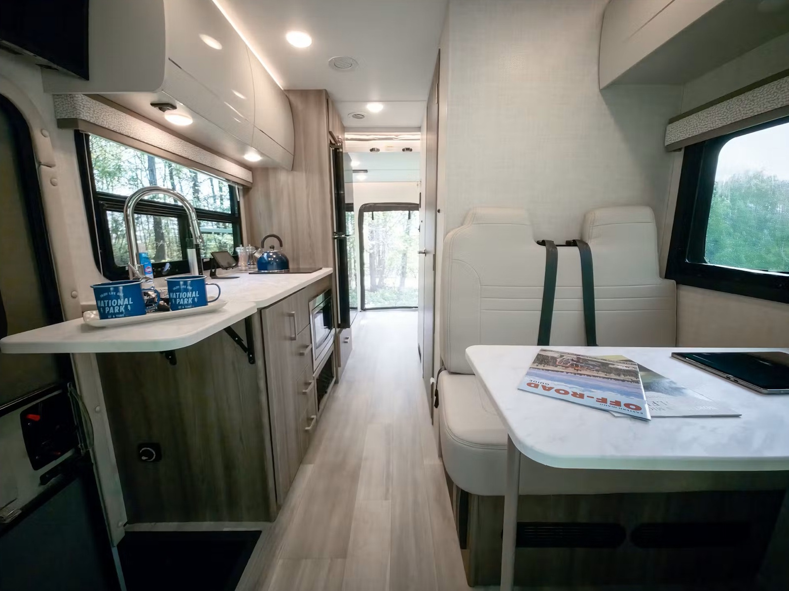 - Easy-to-clean residential vinyl flooring welcomes your furry companions without stress or mess. When it's time to relax, a comfortable leatherette jack-knife sofa in the 24JG and 24KB models exceeds expectations. The 23TW offers a more traditional dining and lounging experience with a Dream Dinette®, while the 22MT floor plan’s forward-facing dinette seat provides a safe ride for all passengers. The Rapid Camp+® multiplex wiring control system by Firefly Integrations allows you to adjust the power settings, generator auto-gen start, lights, and monitor your tank levels from the coach touchscreen or mobile Bluetooth® app.