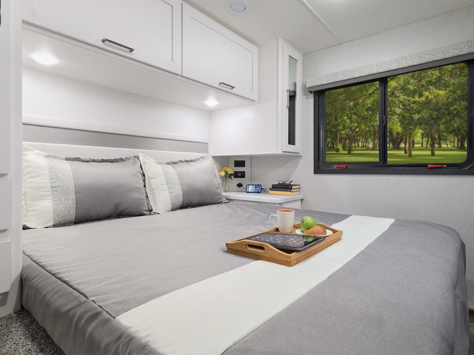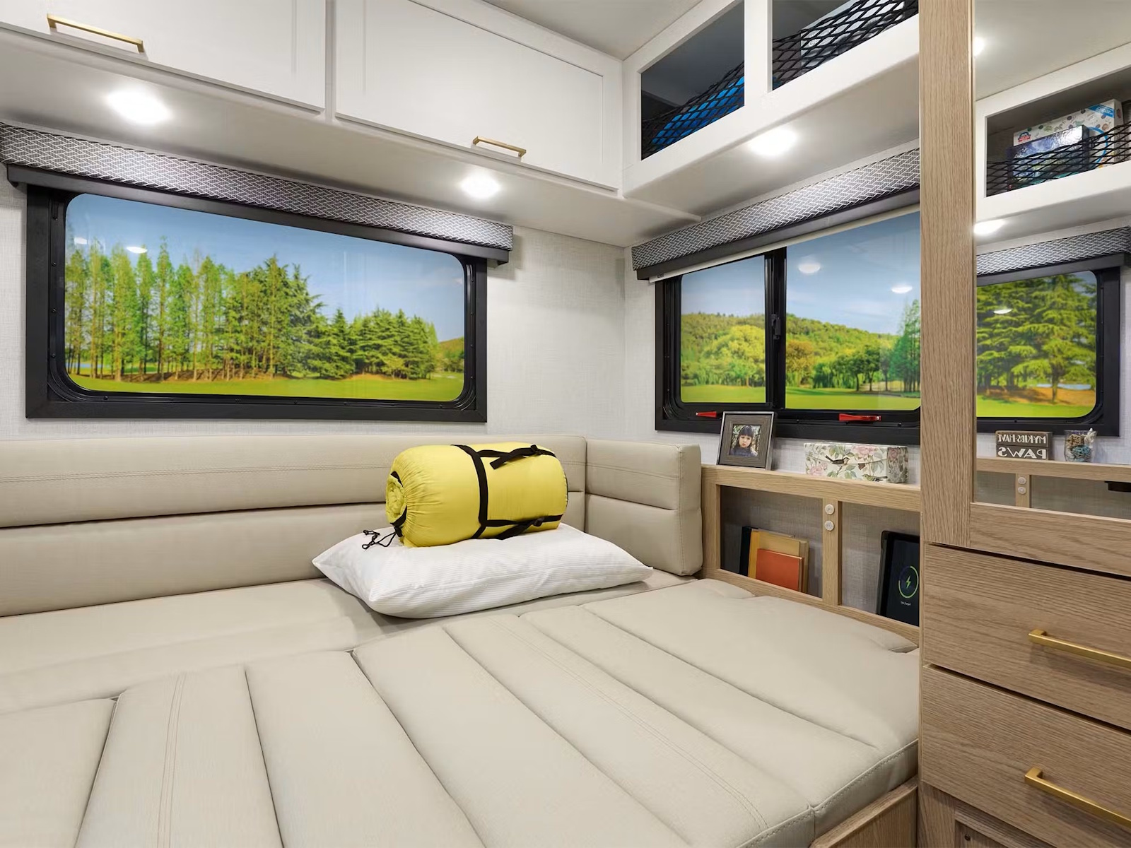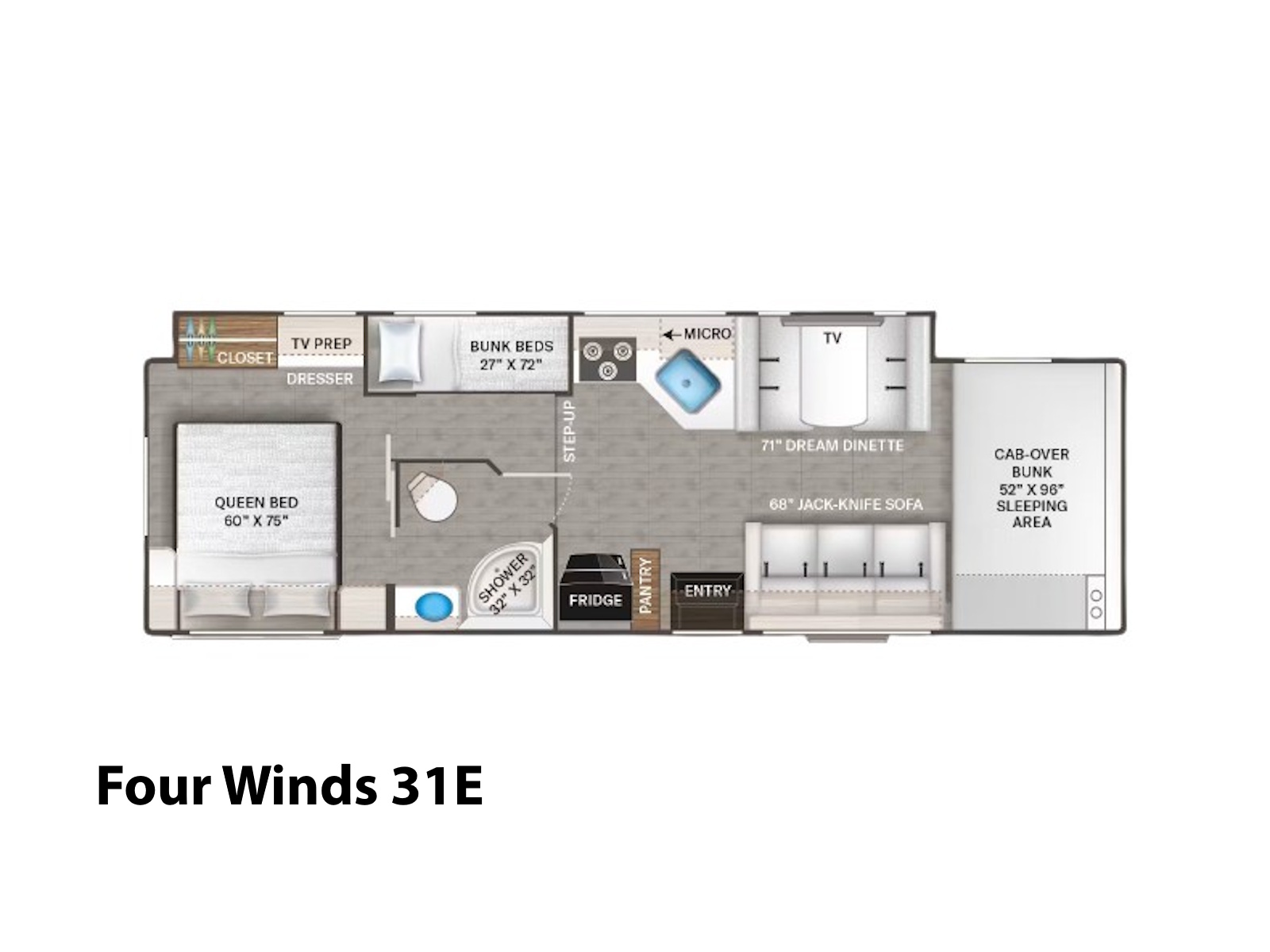 - Rest easy wherever you roam in the Four Winds®, thanks to the cab-over bunk in every model, perfect for kids or guests. Floor plans like the 22Z, 28G, 28Z, 31E, and 31H offer a cozy Queen-size bed, while the 29K goes bigger with a luxurious King. The 31E also has bunk beds that fold into a closet when not in use. If you’re into flexible spaces, the 19Z features a rear U-dinette that converts into a bed, while the 19X and 25Z include twin beds that combine into a King. Those who prefer a smaller setup will sleep soundly on the 21Z’s full-size bed.