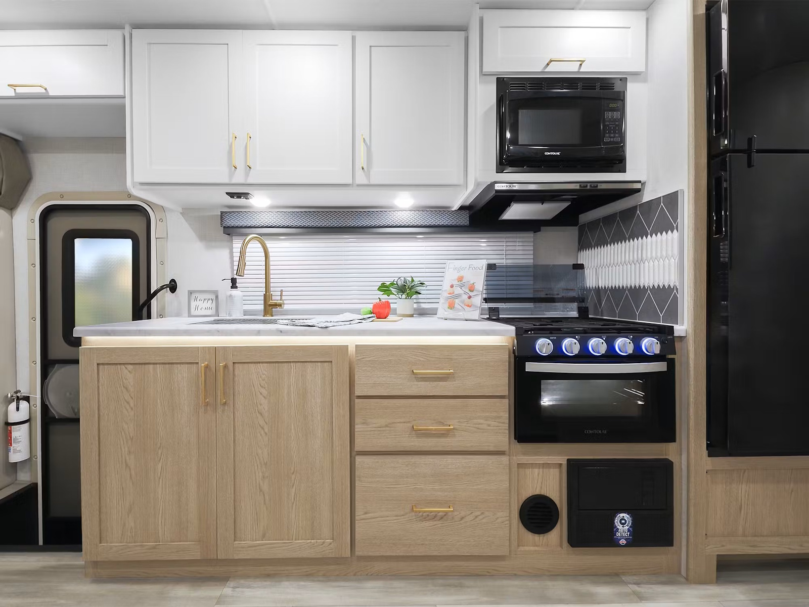 - Cooking is a breeze in the Four Winds®, with every floor plan offering a 12-volt refrigerator and a single-bowl stainless-steel sink with a pull-down sprayer. Enjoy the convenience of an additional pull-out fridge with the 19X model. In the 28Z, 29K, 31E, and 31H, you'll have a three-burner gas cooktop, microwave oven, and a pop-up countertop outlet charging center. Meanwhile, the ESpec layouts feature a two-burner gas cooktop and a convection microwave oven with an air fryer, allowing you to prepare your favorite meals on the road.