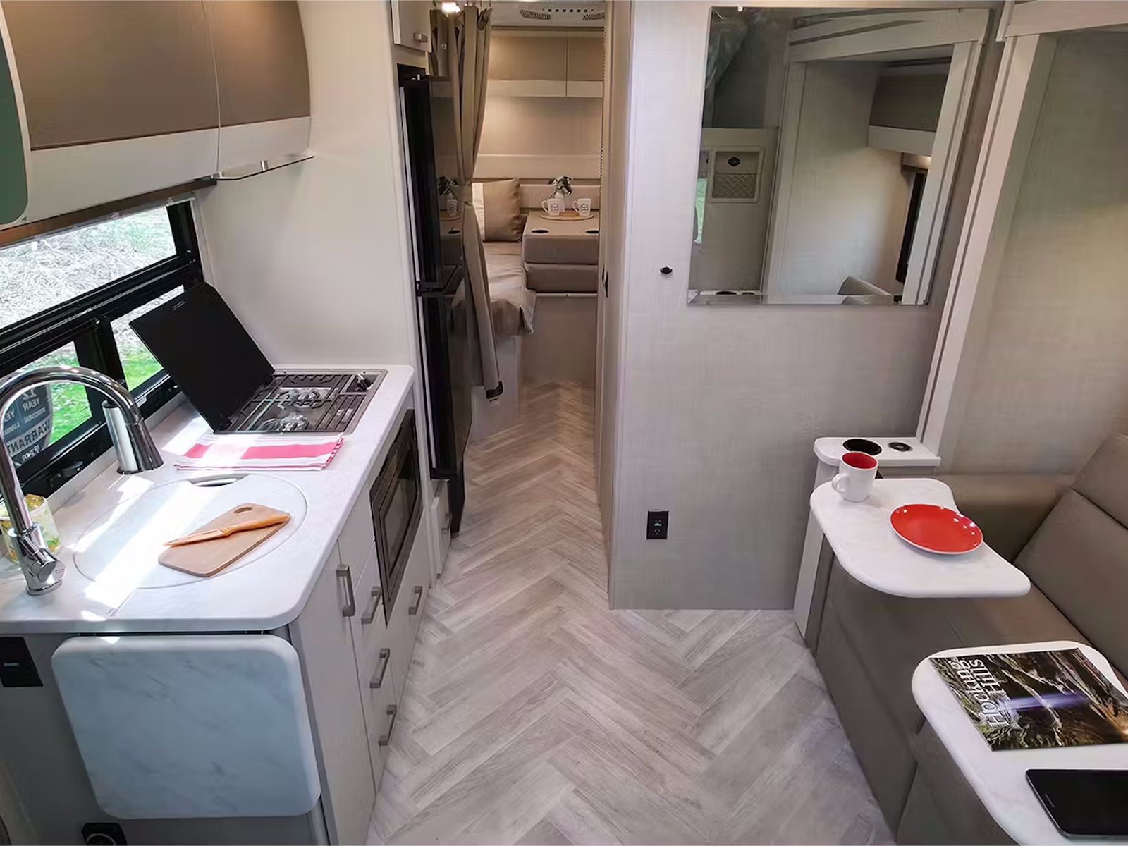 - Travel comfortably and bring your pets without worry in the Gemini AWD®, thanks to the easy-to-clean residential vinyl flooring. After a day of adventure, kick back on the leatherette jack-knife sofa in the 24JG and 24KB floor plans, or enjoy mealtime and game nights in the 23TW’s Dream Dinette®. In the 22MT model, the forward-facing dinette seat provides a secure and comfortable ride during trips. For added convenience, the Rapid Camp+® multiplex control system by Firefly Integrations lets you manage lighting, power, tank levels, and generator settings from the onboard touchscreen or a mobile Bluetooth® app.