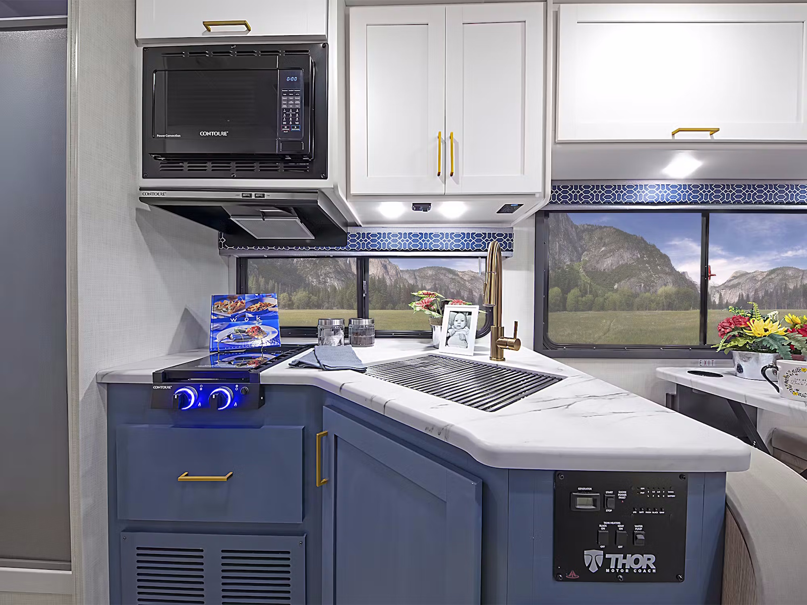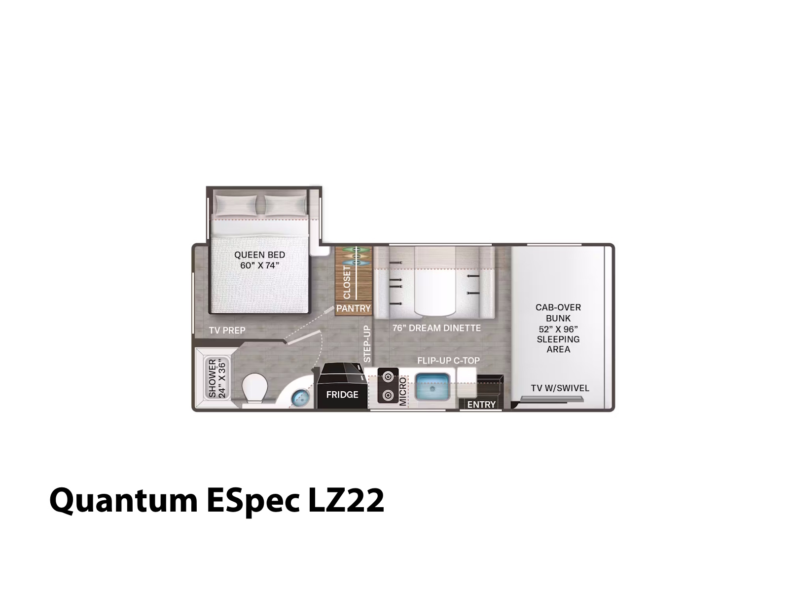 - Ditch the takeout and cook your favorite meals inside the Quantum®, which includes a 12-volt refrigerator and a single-bowl stainless-steel sink with a pull-down sprayer. Most models also feature a two-burner gas cooktop, while select layouts offer upgraded cooking options like a two-burner gas cooktop with a single induction burner in the KW29, LF31, and HS31, a convection microwave oven with an air fryer in all ESpec models, or a recessed three-burner gas cooktop/oven with a microwave oven in the LC28. Many floor plans also have a flip-up countertop extension for additional prep space.
