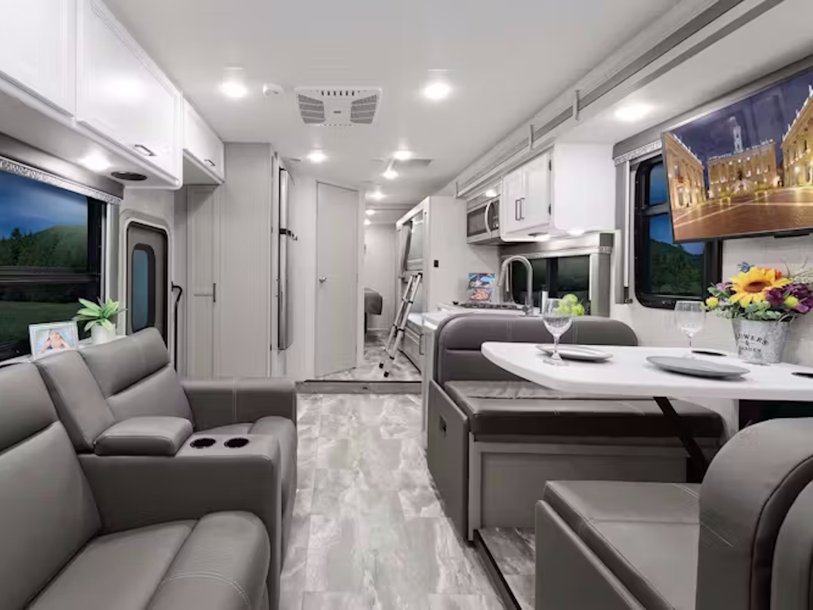 - Built for life on the road, the Quantum® Class C RV combines comfort, durability, and innovative design with easy-to-clean residential vinyl flooring, perfect for pet owners. Most floor plans include the versatile Dream Dinette®, which effortlessly converts from a dining area to an extra bed, while the LC19 features a spacious rear U-dinette that transforms into a sleeping space. In the LC28, KW29, LF31, and HS31 layouts, you'll appreciate the stylish interior and the option to relax on the standard jack-knife sofa or upgrade to the optional theater seating with footrests for added comfort.