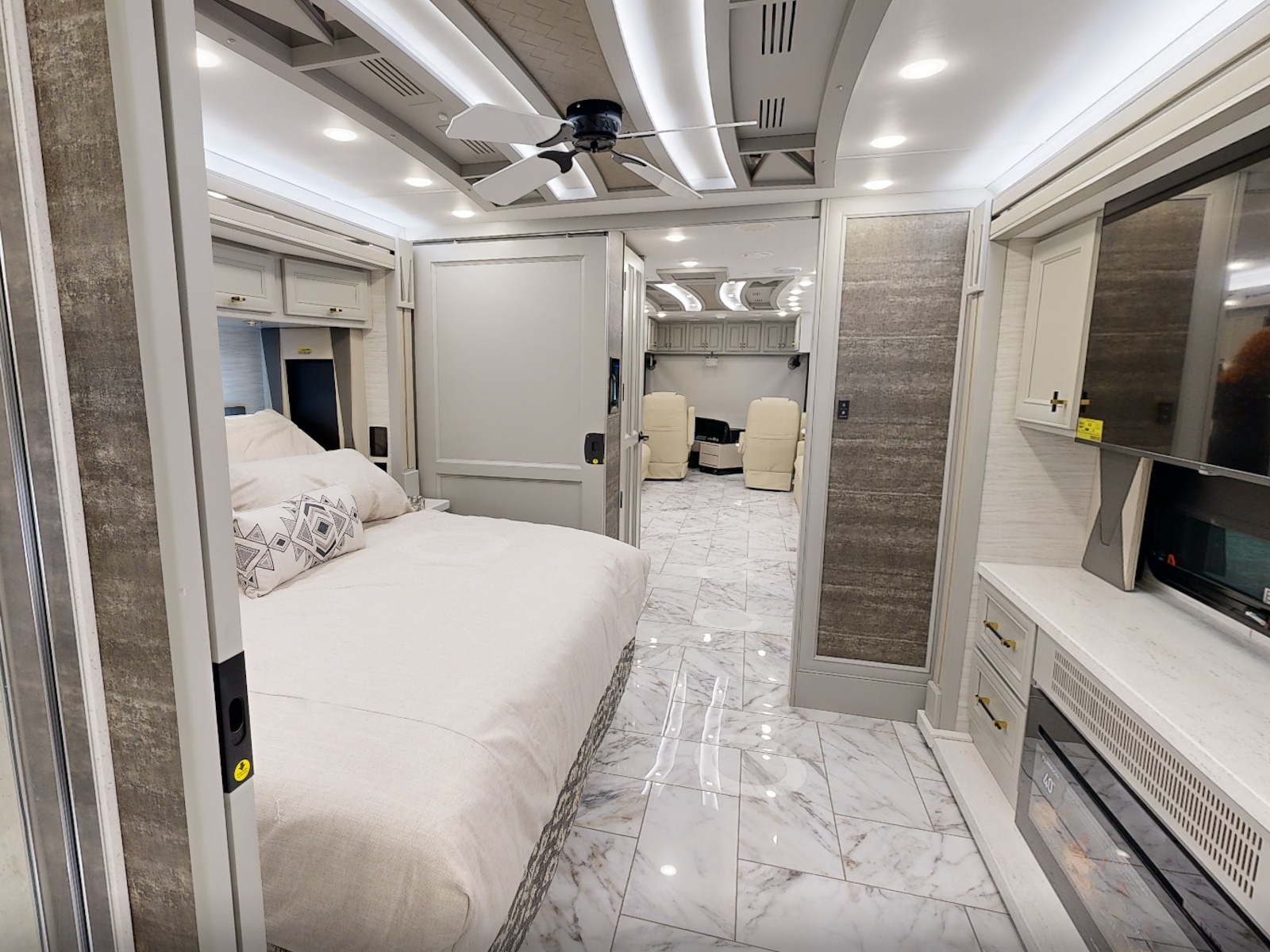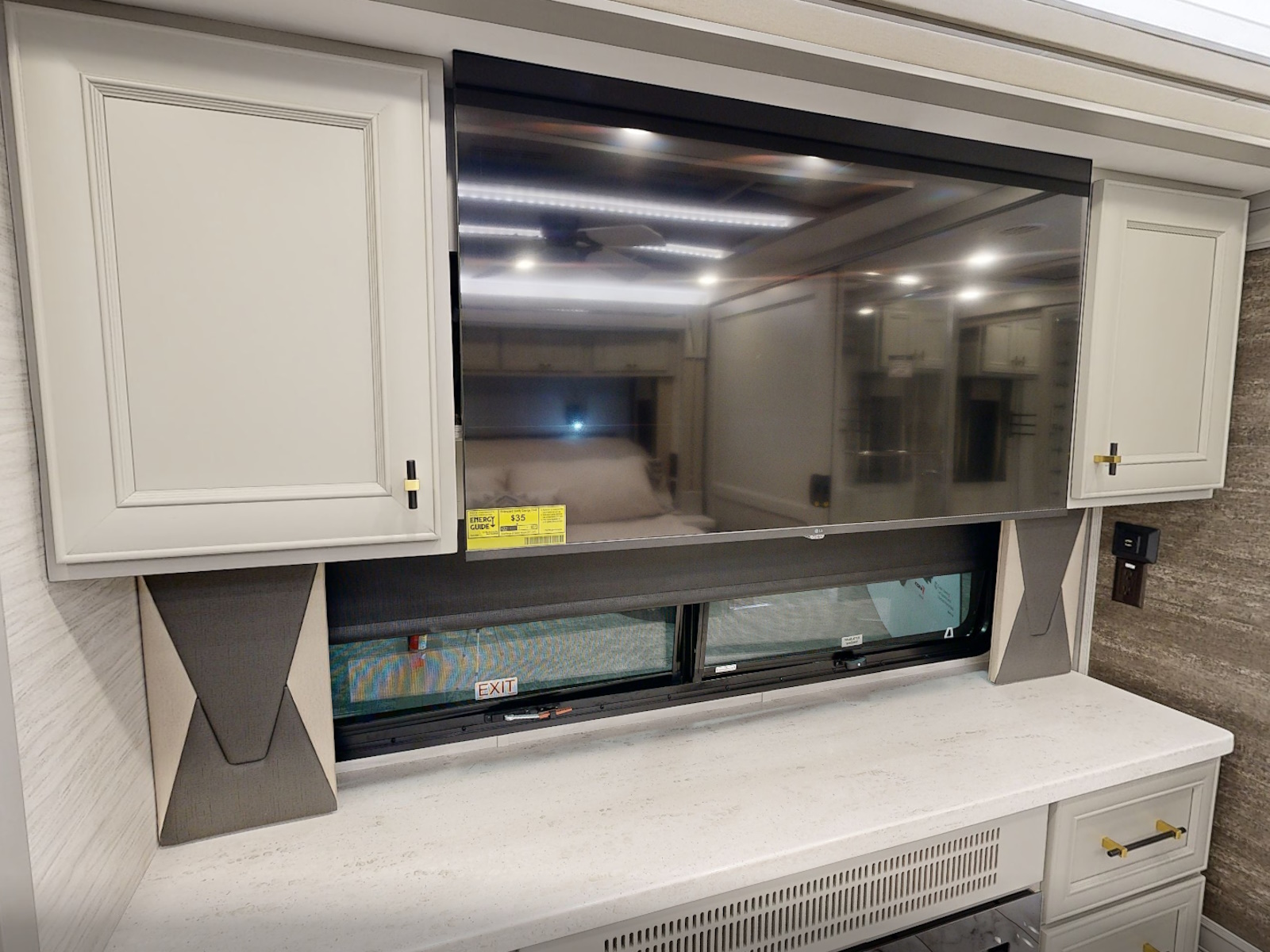 Mounted Bedroom TV | Living Area TV | Exterior TV with Soundbar | Fast Charge USB ports within Exterior TV Compartment
