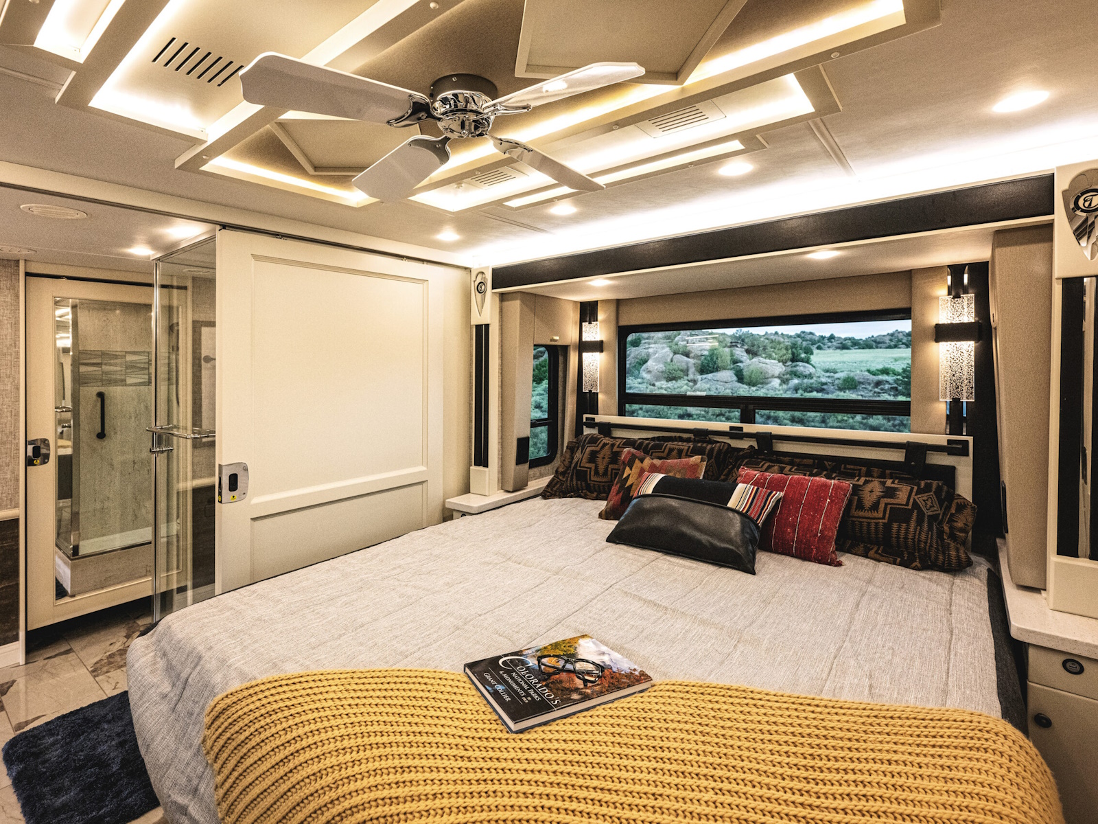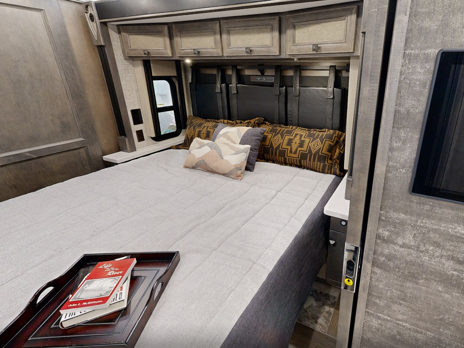 Mounted Bedroom TV | Living Area TV | Exterior TV with Soundbar | Fast Charge USB ports within Exterior TV Compartment