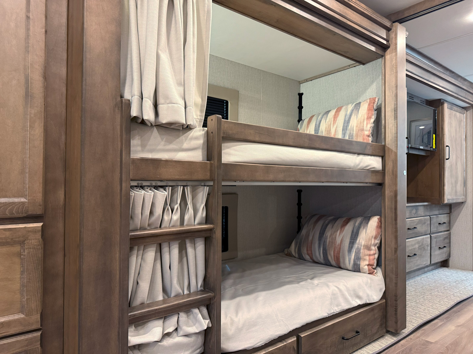 Living Area TV | Exterior TV with Soundbar | Fast Charge USB ports within Exterior TV Compartment | Mounted Bedroom TV