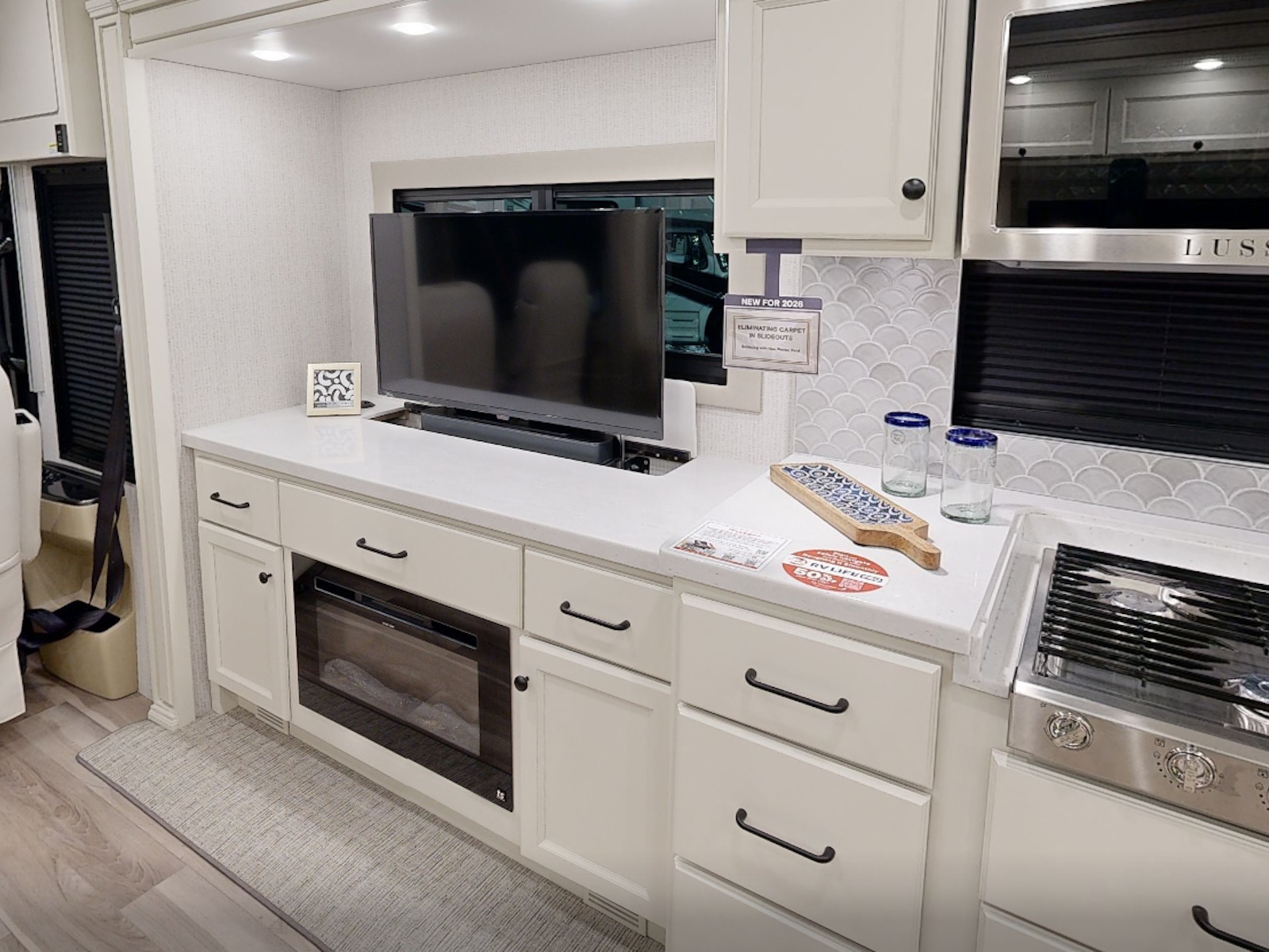 Living Area TV | Exterior TV with Soundbar | Fast Charge USB ports within Exterior TV Compartment | Mounted Bedroom TV