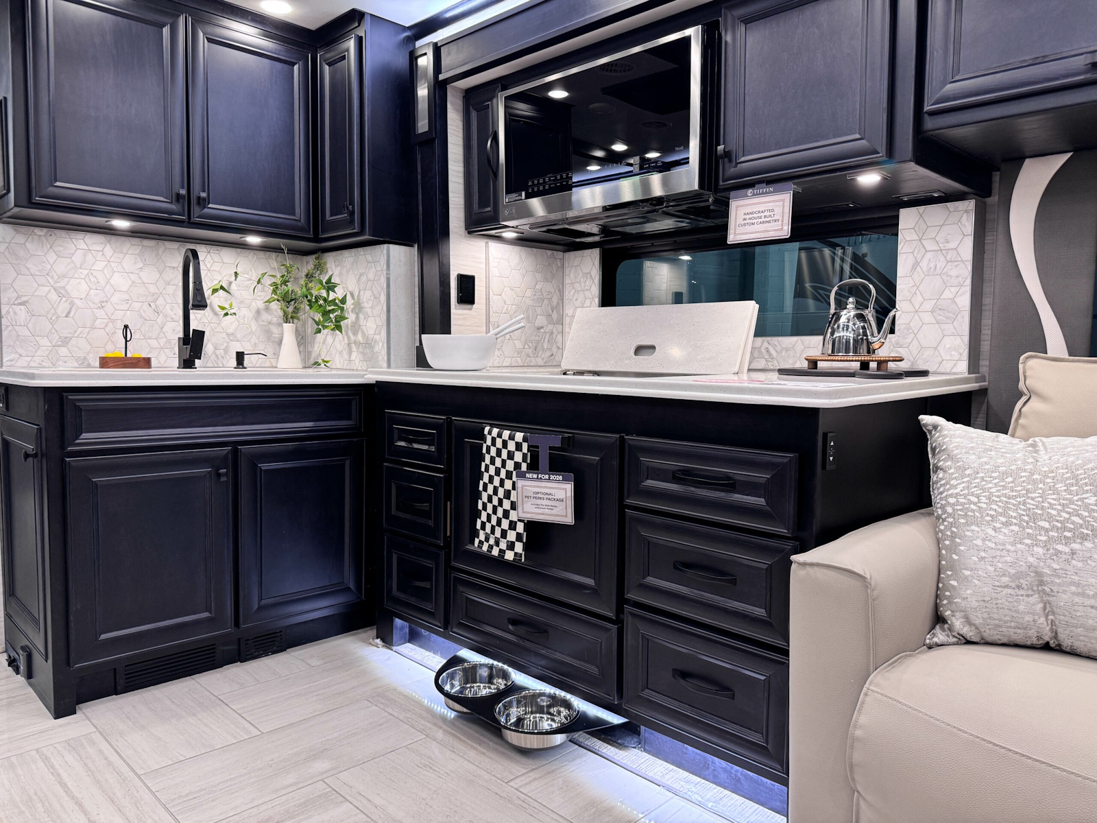 The 2026 Phaeton redefines luxury on the road with a host of new upgrades designed to elevate every journey. With four spacious floor plans ranging from 37′ 9″ to 45′, there’s a perfect option for every traveler. We’re unveiling new interior decors and stylish tile floor choices, including a heated tile option, giving you options to match your tastes and lifestyle. And for pet lovers, the optional Pet Perks Package ensures your furry friends travel in comfort too. No matter where the road takes you, the 2026 Phaeton is ready to take your travel experience to the next level.