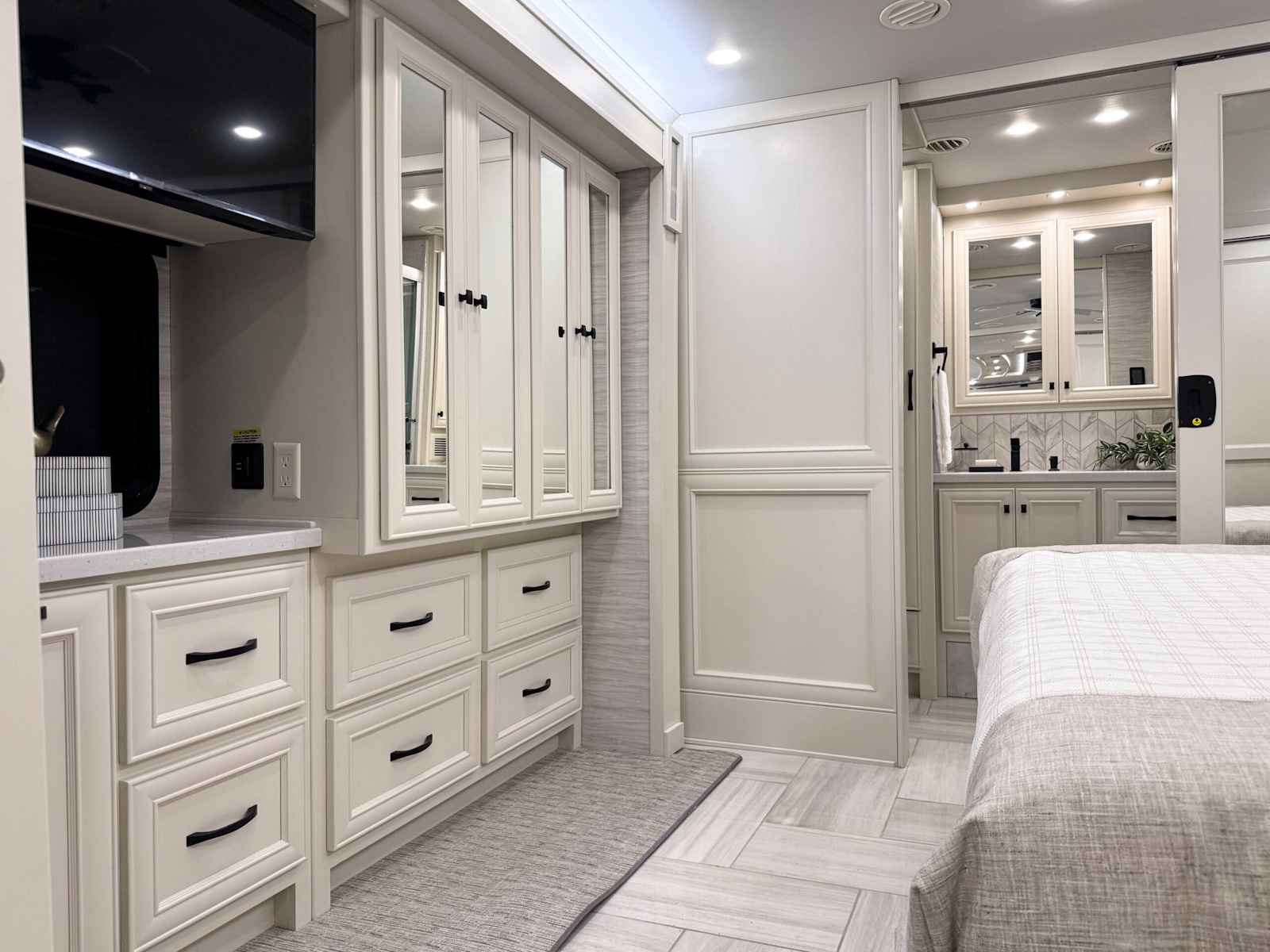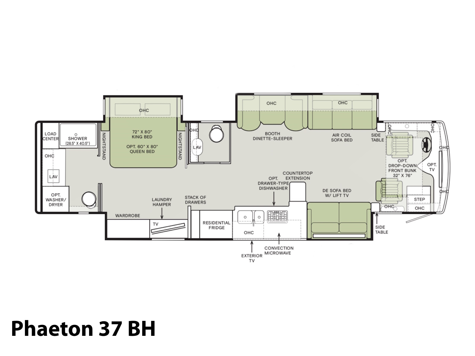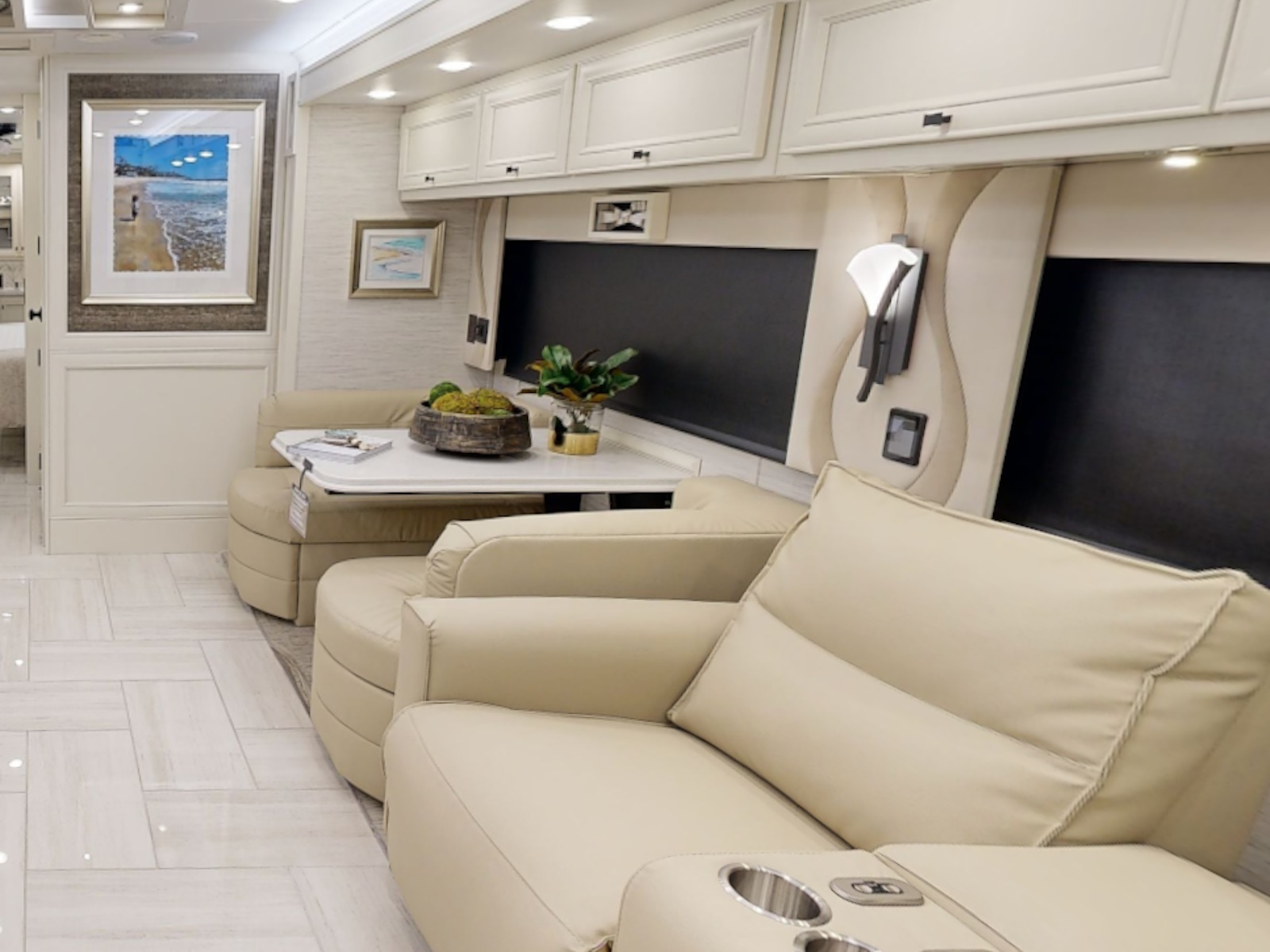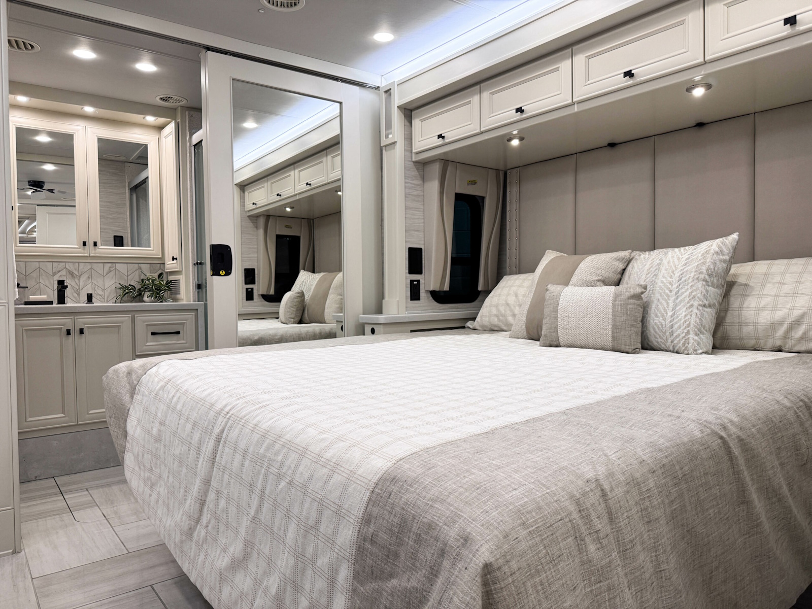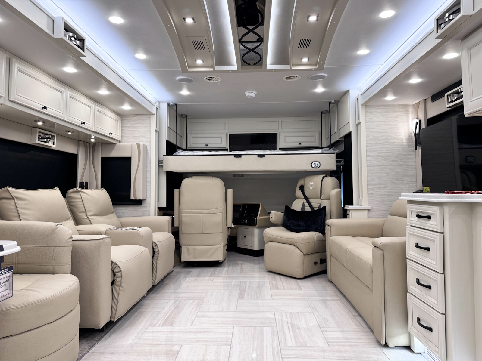 The 2026 Phaeton redefines luxury on the road with a host of new upgrades designed to elevate every journey. With four spacious floor plans ranging from 37′ 9″ to 45′, there’s a perfect option for every traveler. We’re unveiling new interior decors and stylish tile floor choices, including a heated tile option, giving you options to match your tastes and lifestyle. And for pet lovers, the optional Pet Perks Package ensures your furry friends travel in comfort too. No matter where the road takes you, the 2026 Phaeton is ready to take your travel experience to the next level.