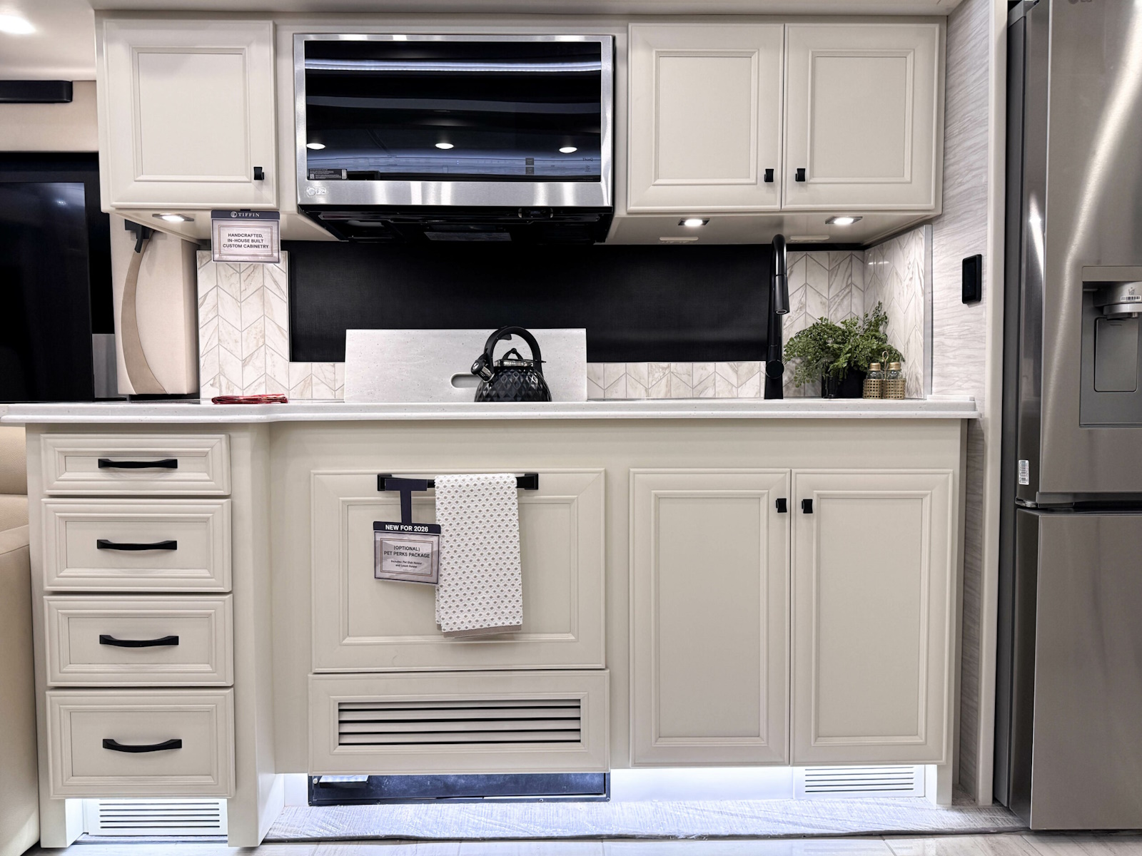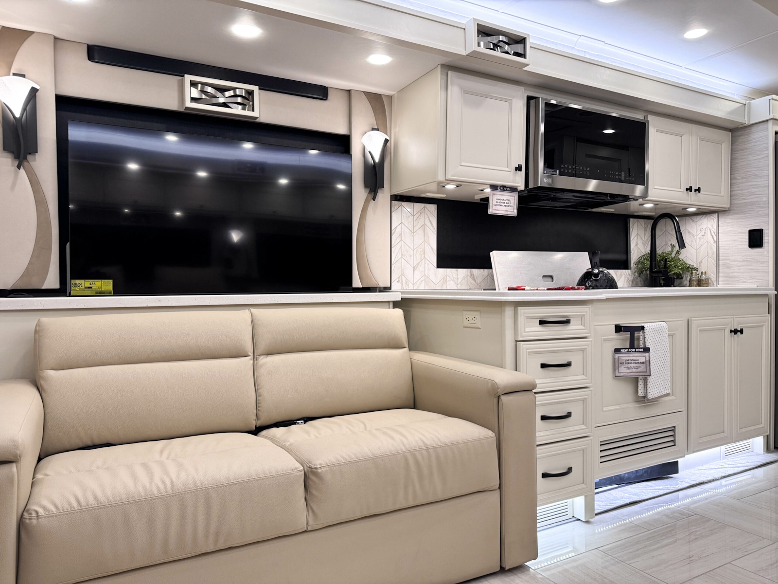 The 2026 Phaeton redefines luxury on the road with a host of new upgrades designed to elevate every journey. With four spacious floor plans ranging from 37′ 9″ to 45′, there’s a perfect option for every traveler. We’re unveiling new interior decors and stylish tile floor choices, including a heated tile option, giving you options to match your tastes and lifestyle. And for pet lovers, the optional Pet Perks Package ensures your furry friends travel in comfort too. No matter where the road takes you, the 2026 Phaeton is ready to take your travel experience to the next level.