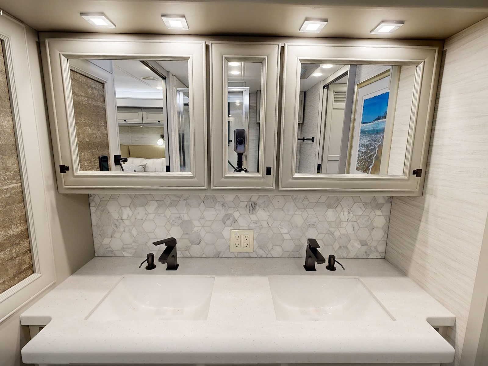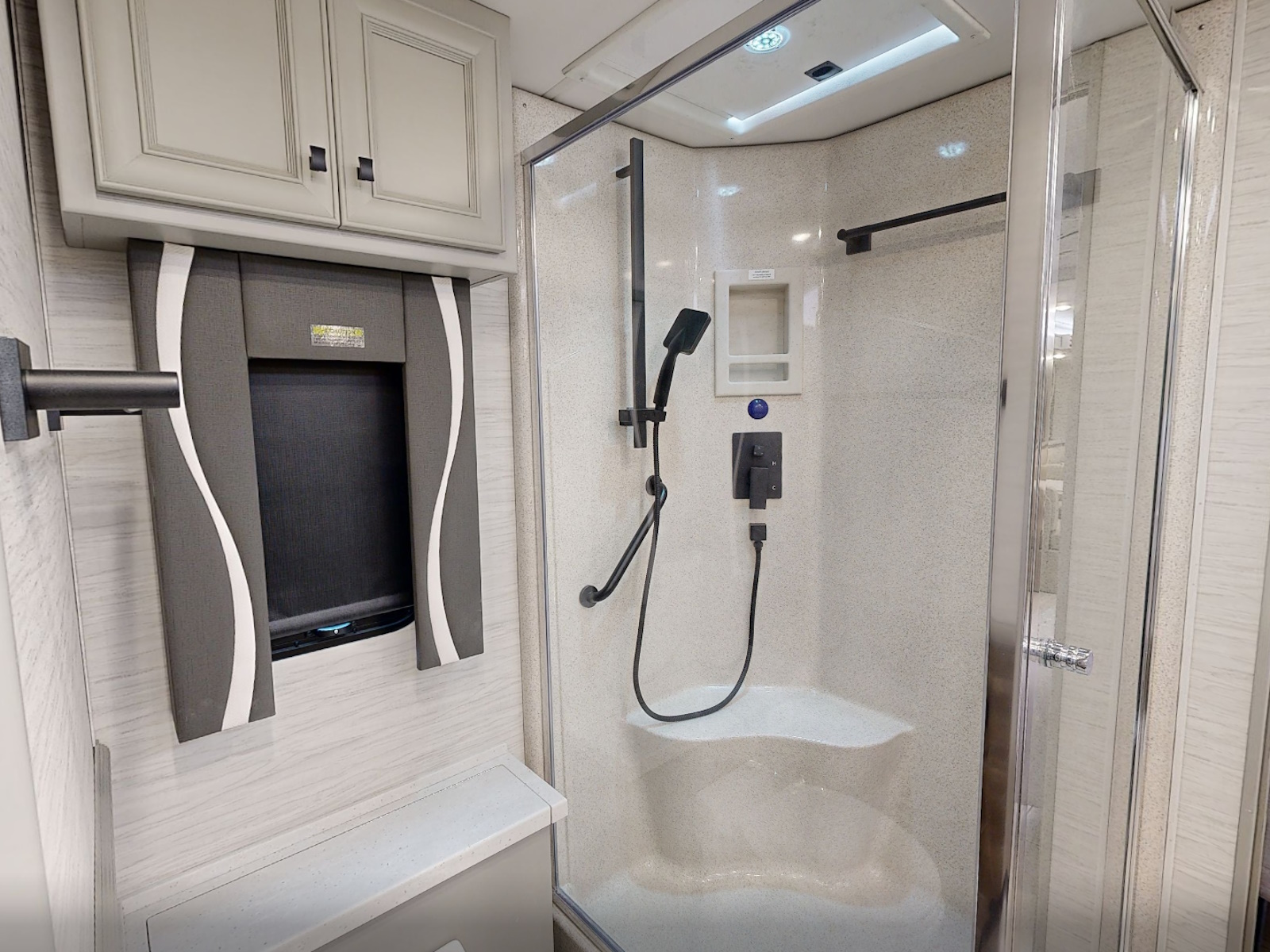 Mounted Bedroom TV | Living Area TV | Exterior TV with Soundbar | Fast Charge USB ports within Exterior TV Compartment