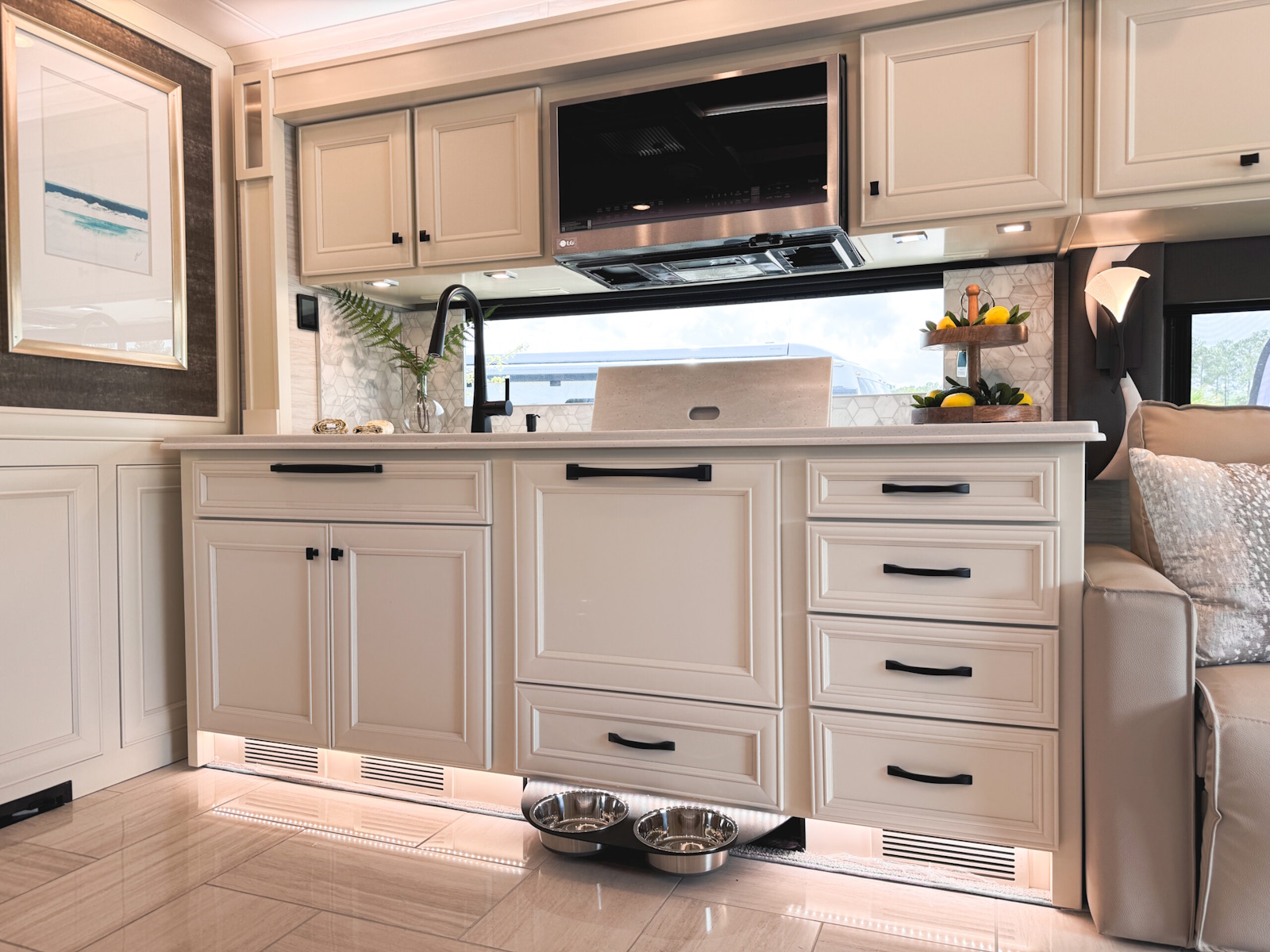 The 2026 Phaeton redefines luxury on the road with a host of new upgrades designed to elevate every journey. With four spacious floor plans ranging from 37′ 9″ to 45′, there’s a perfect option for every traveler. We’re unveiling new interior decors and stylish tile floor choices, including a heated tile option, giving you options to match your tastes and lifestyle. And for pet lovers, the optional Pet Perks Package ensures your furry friends travel in comfort too. No matter where the road takes you, the 2026 Phaeton is ready to take your travel experience to the next level.