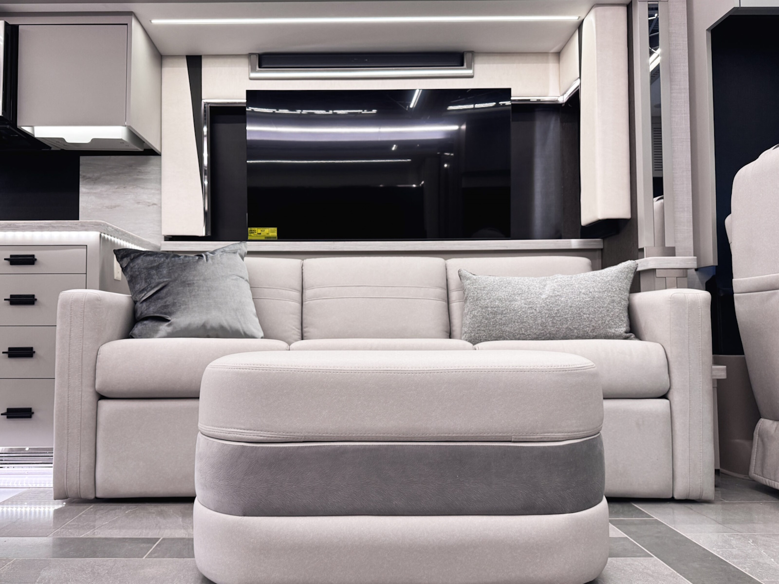 Mounted Bedroom TV | Living Area TV | Exterior TV with Soundbar | Fast Charge USB ports within Exterior TV Compartment