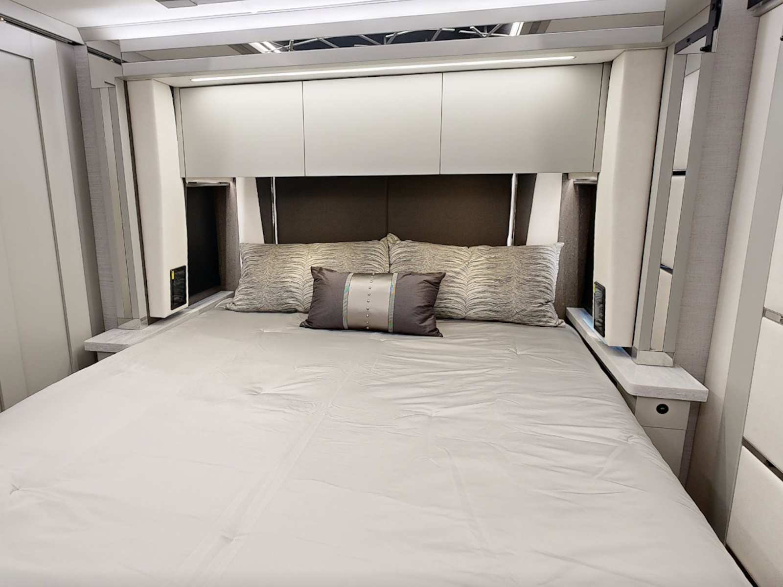 Mounted Bedroom TV | Living Area TV | Exterior TV with Soundbar | Fast Charge USB ports within Exterior TV Compartment