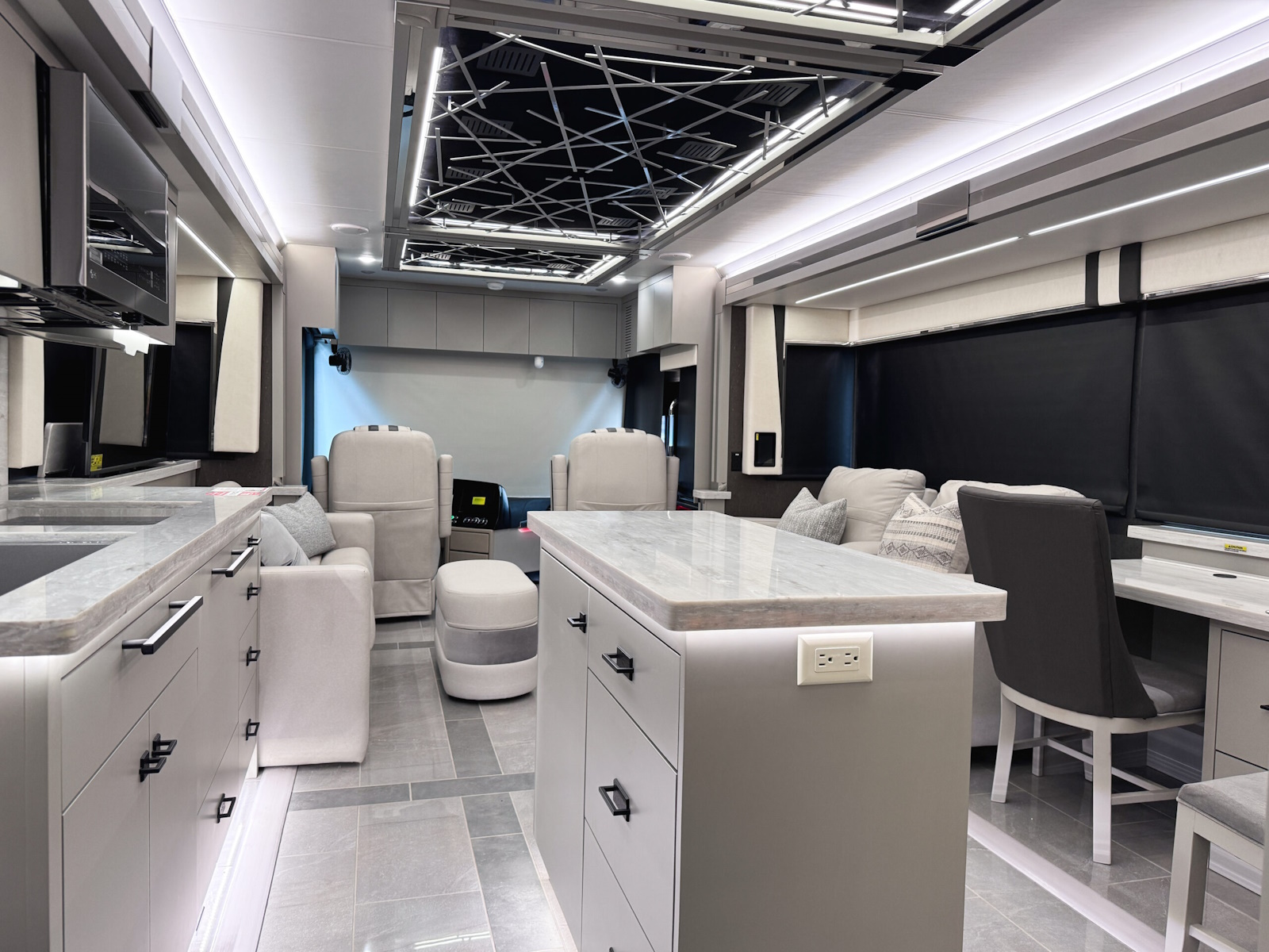 12.5-Kilowatt Onan® Quiet Diesel Generator | Powered Generator Slide Tray | (2) 3,000-Watt Pure Sine Wave Inverter Chargers, both with Auto-Gen Start and Interior Remote Control | Generator Start & Stop Rocker Switch