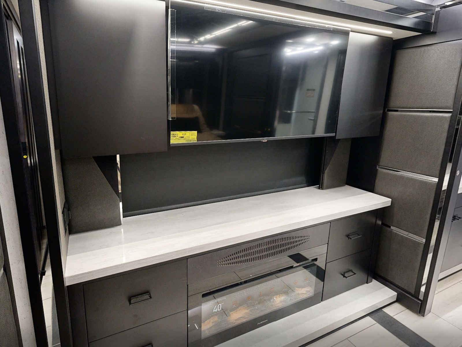Mounted Bedroom TV | Living Area TV | Exterior TV with Soundbar | Fast Charge USB ports within Exterior TV Compartment