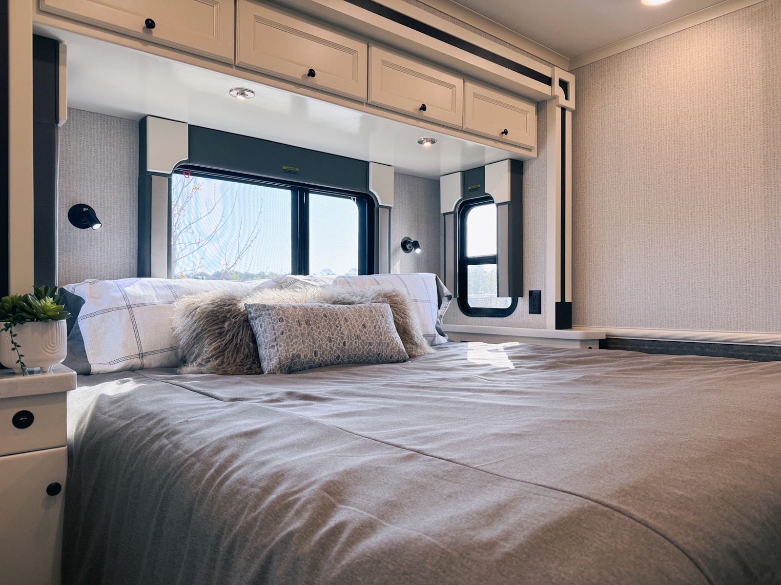 Mounted Bedroom TV | Living Area TV | Exterior TV with Soundbar | Fast Charge USB ports within Exterior TV Compartment