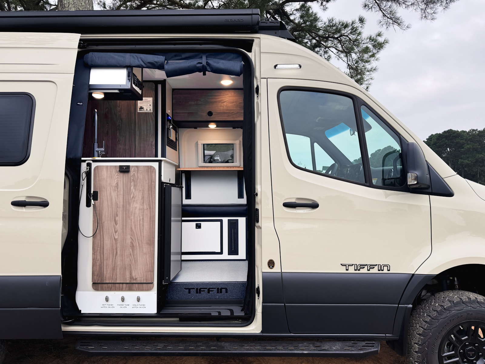 The Tiffin GH1 is designed with every component needed to make it off-road ready. Built on a Mercedes Benz AWD chassis, and equipped with many standard features any off-road vehicle requires, the GH1 can handle any terrain.