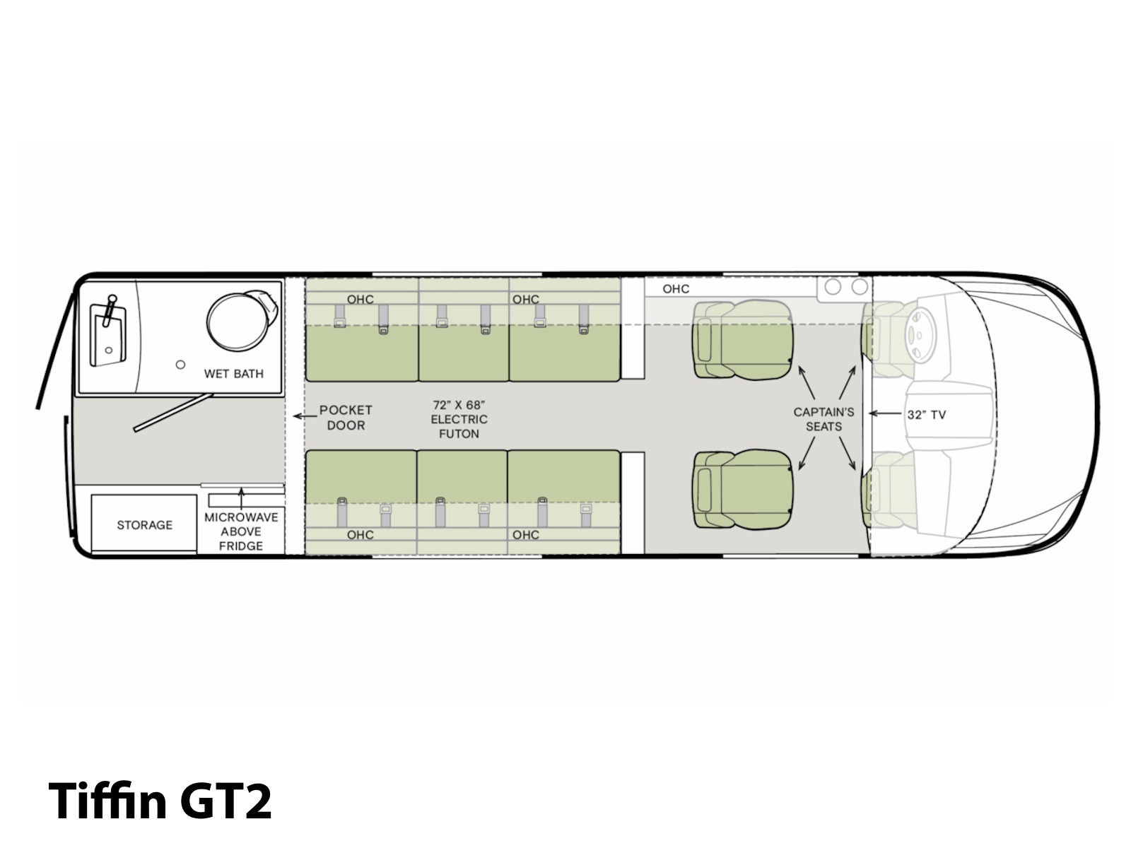 The Tiffin GT2 is built for those who crave comfort, style, and the freedom to roam. Riding on a Mercedes-Benz® Sprinter AWD chassis, it offers confident handling on any terrain. This 24-foot van makes every journey feel first-class, whether you’re exploring scenic backroads, enjoying a weekend golf trip, or spending the day in the city. Inside, it features heated leather seats, a private bathroom, and a rear lounge that converts into a cozy bed. With advanced power systems and Starlink™ Pro prewire, the GT2 keeps you connected and ready for adventure.