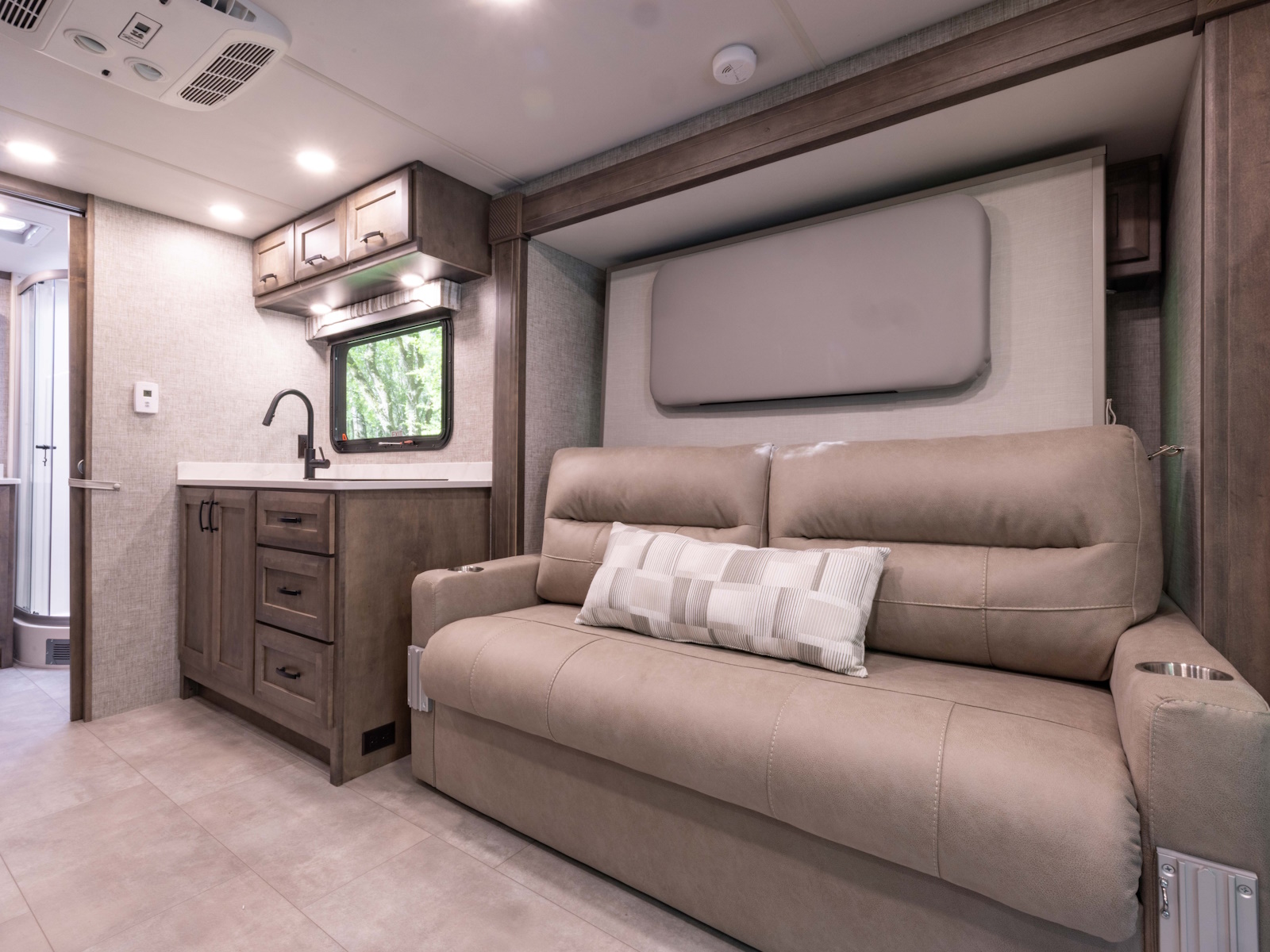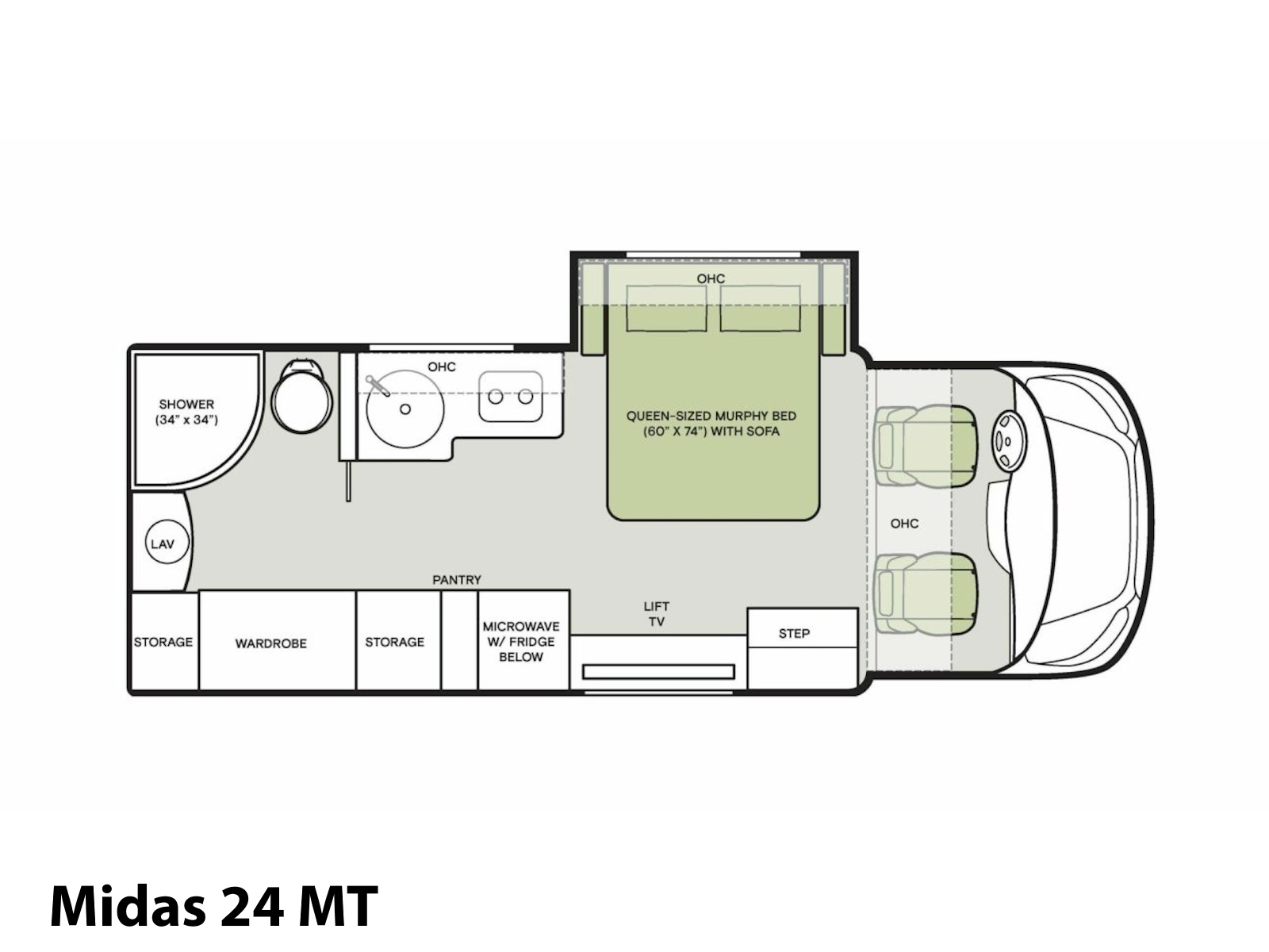 Built on the robust Ford 350 HD AWD Transit Cutaway chassis, the 2026 Midas is Tiffin’s most agile Class C coach yet. Measuring just under 25 feet in length, this gas-powered motorhome maximizes every inch with an impressively spacious interior. The 24 MT floor plan features a queen-sized Murphy Bed that conveniently folds away to open up your living area. Handcrafted cabinetry throughout delivers ample storage, blending function with elegant design. Don’t compromise—experience the unmatched quality, thoughtful craftsmanship, and elevated comfort that define the 2026 Midas