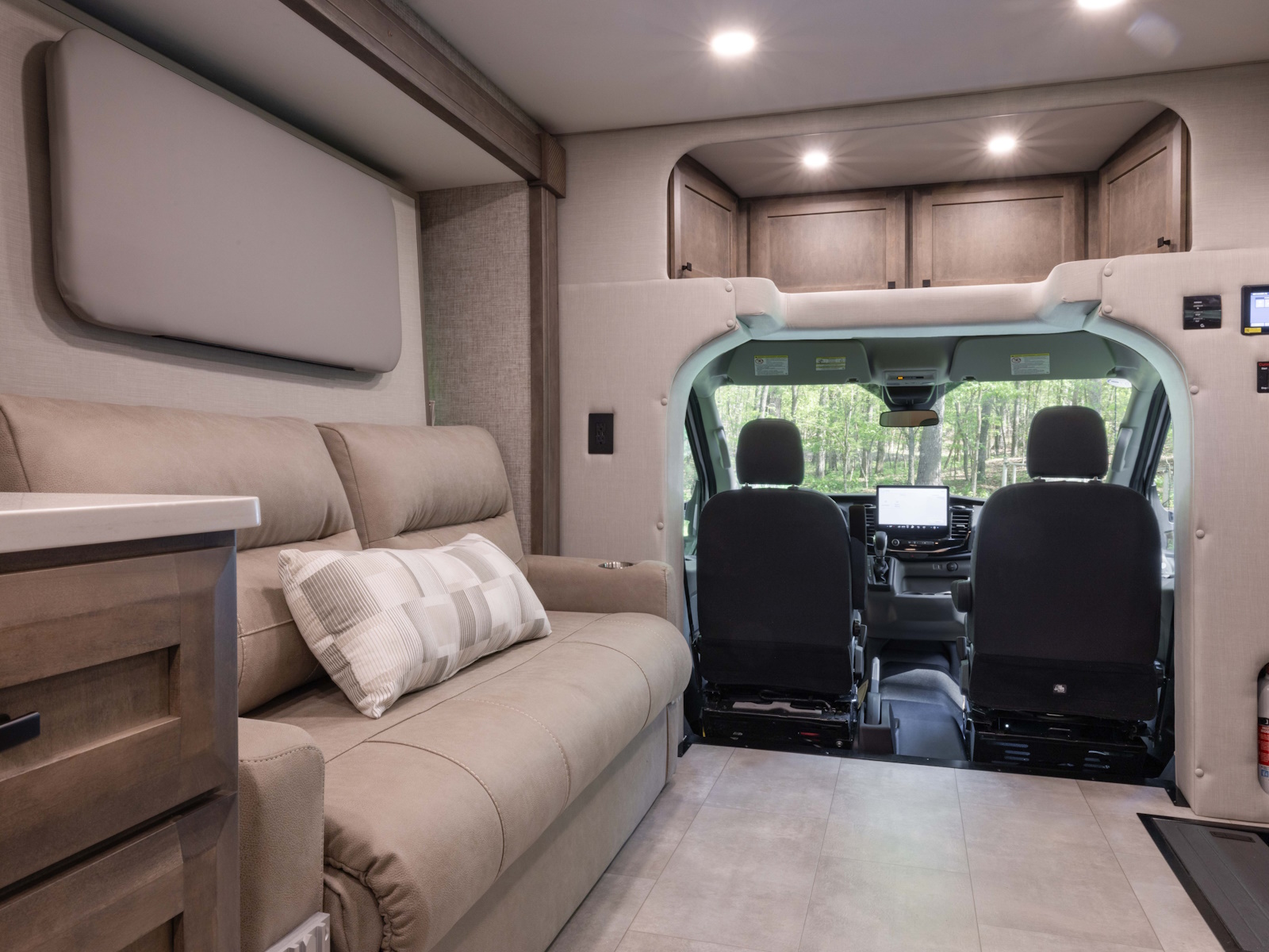 Built on the robust Ford 350 HD AWD Transit Cutaway chassis, the 2026 Midas is Tiffin’s most agile Class C coach yet. Measuring just under 25 feet in length, this gas-powered motorhome maximizes every inch with an impressively spacious interior. The 24 MT floor plan features a queen-sized Murphy Bed that conveniently folds away to open up your living area. Handcrafted cabinetry throughout delivers ample storage, blending function with elegant design. Don’t compromise—experience the unmatched quality, thoughtful craftsmanship, and elevated comfort that define the 2026 Midas