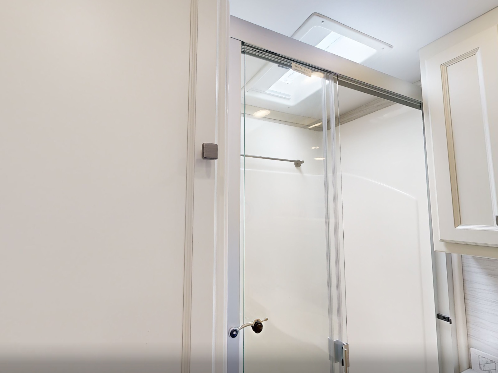 Aqua View Showermiser™ | Exterior Rinse Hose with Shower Head | Handheld Shower Head with Slide Bar | Shower Skylight | Shower LED Light with Sliding Cover | One-Piece Molded Fiberglass Shower (28.5 in x 40.5 in)