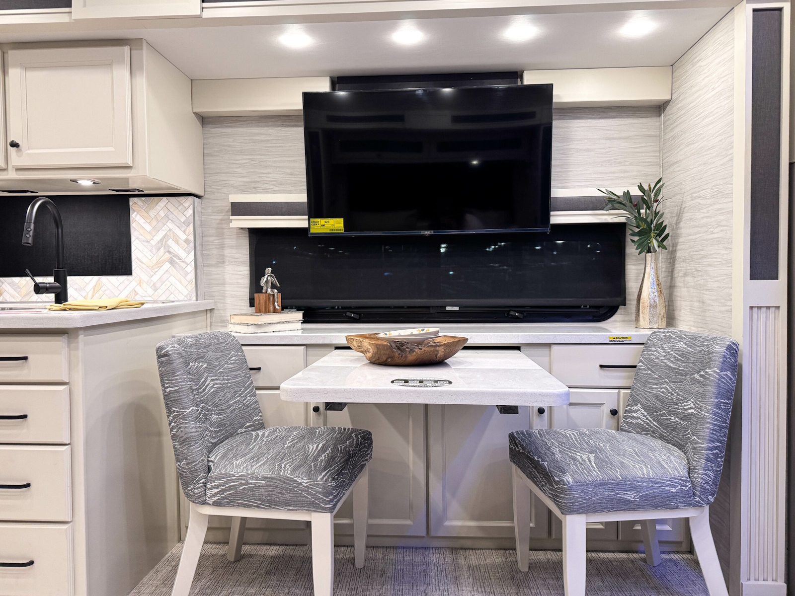 Living Area TV | Exterior TV with Soundbar | Fast Charge USB ports within Exterior TV Compartment | Mounted Bedroom TV