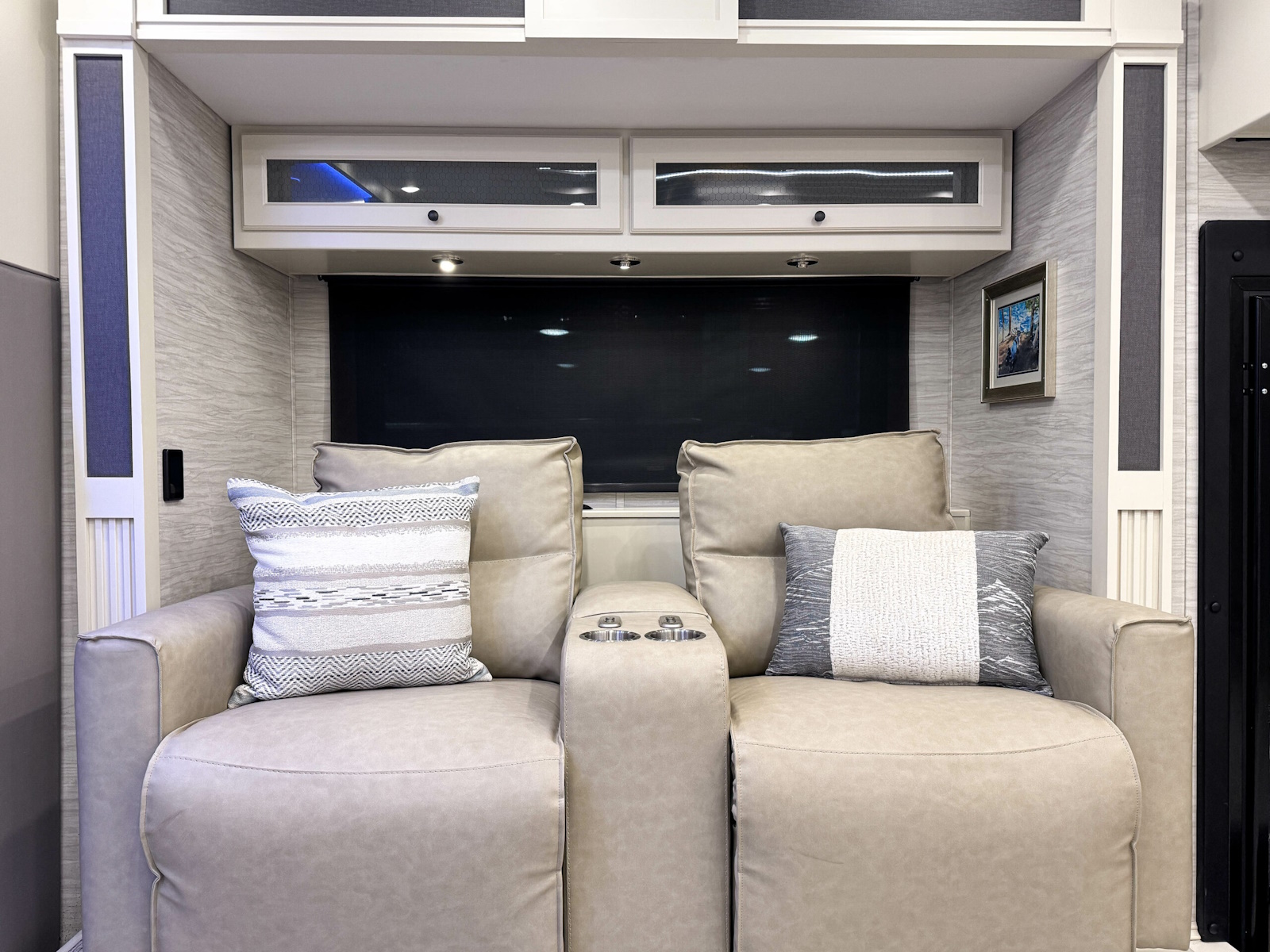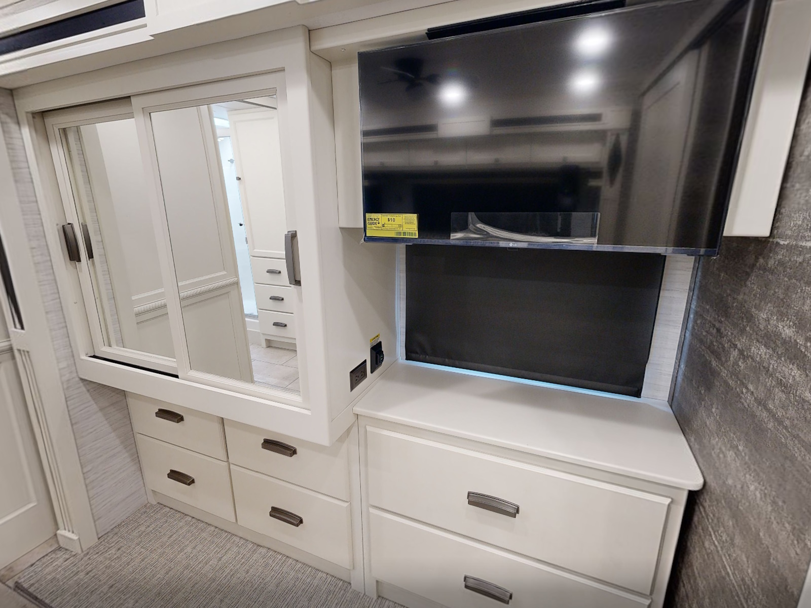 Living Area TV | Exterior TV with Soundbar | Fast Charge USB ports within Exterior TV Compartment | Mounted Bedroom TV