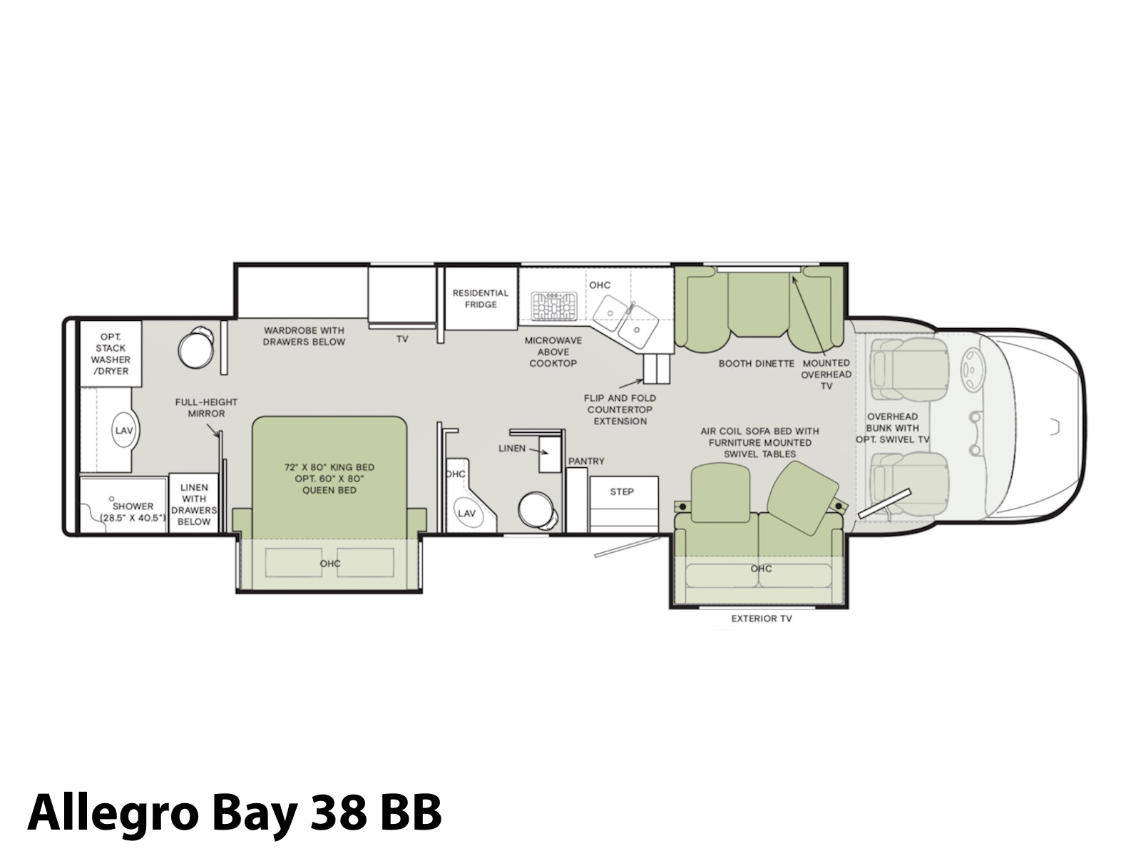 Basement: 114 cu ft | Under Bed Storage | Side-swinging Exterior Storage | Overhead Cabinets